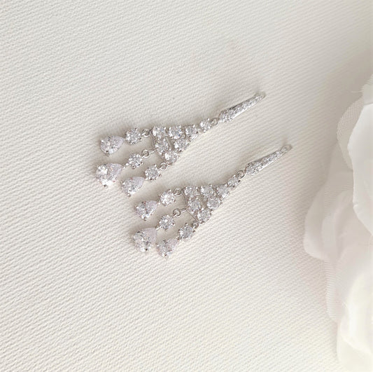 Silver & Cubic Zirconia Drop Earrings- Allison