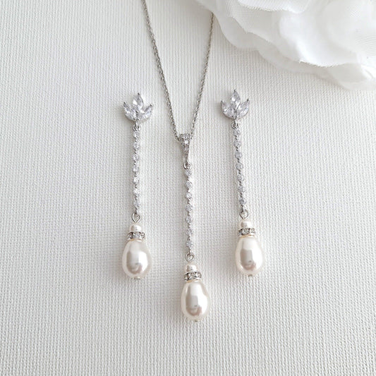 Earrings With Long Pendant Necklace Wedding Jewelry Set-Reagan