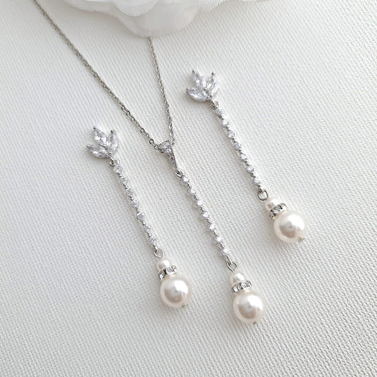 Long Pearl Drop Earrings and Necklace Set- Jodi