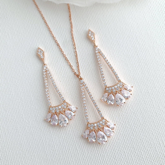 Necklace and Earring Set for Wedding in Rose Gold-Hazel