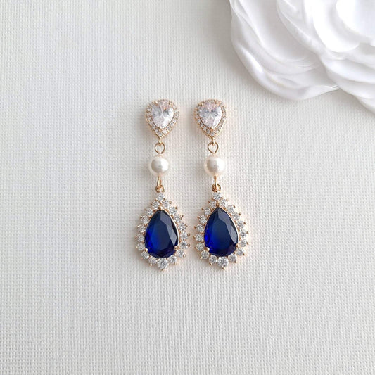 Pearl and Crystal Blue Wedding Jewelry Set for Brides-Aoi