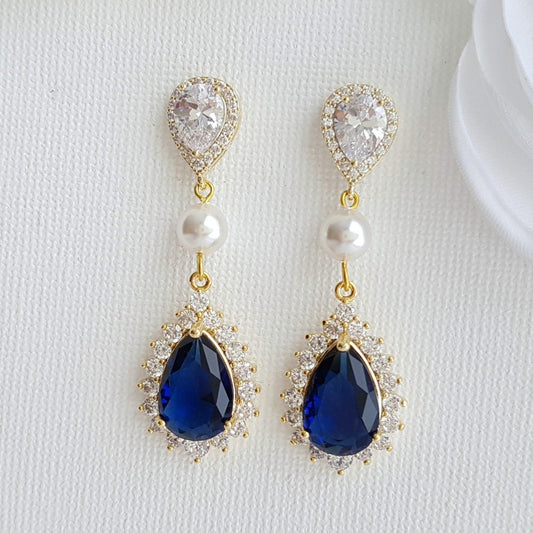 Blue and Gold Teardrop Clip On Earrings for Brides-Aoi