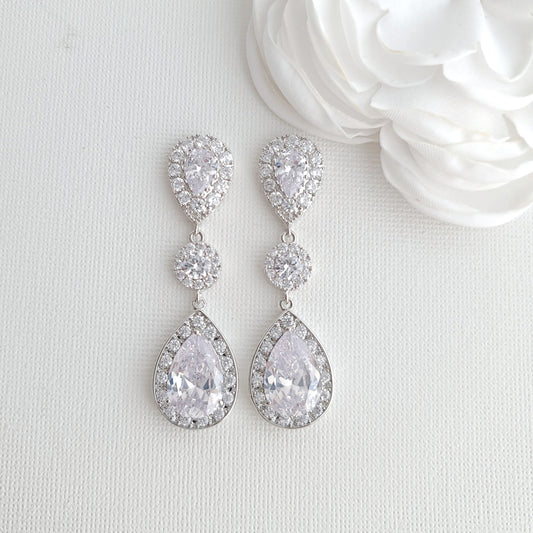 Big Wedding Earrings with Large CZ Teardrops-Penelope
