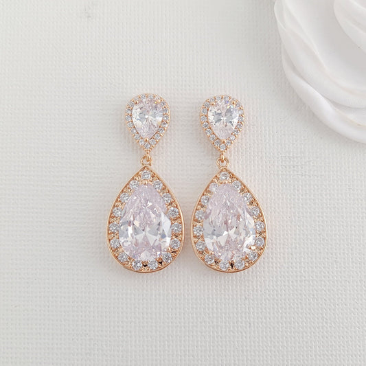 Teardrop Rose Gold Earrings For Weddings-Raya
