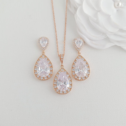 Teardrop Bridal Jewelry Set in Rose Gold- Evelyn