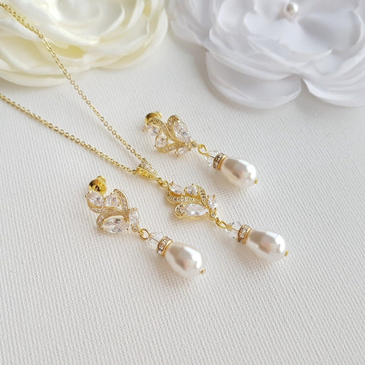 Teardrop Necklace and Earrings Wedding Jewelry Set- Evelyn