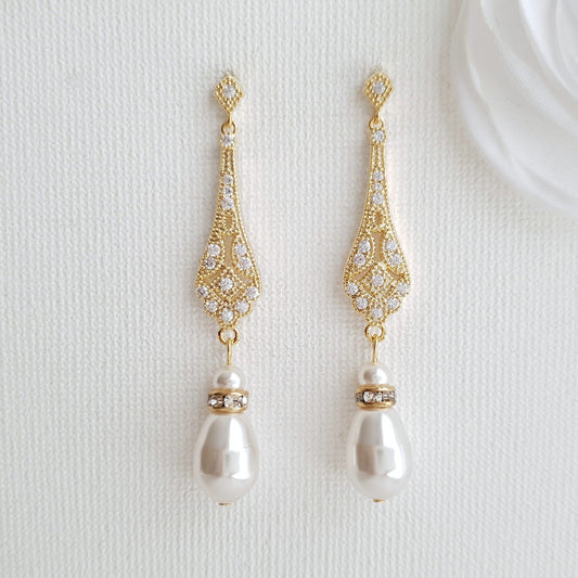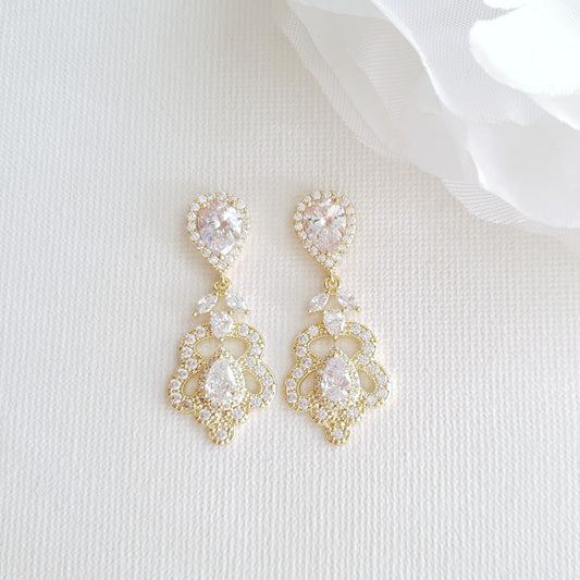 Vintage Style Rose Gold Bridal Earrings-Lisa