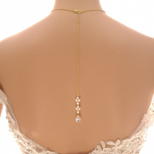 Gold Necklace with Long Pendant and Backdrop for Brides-Anya
