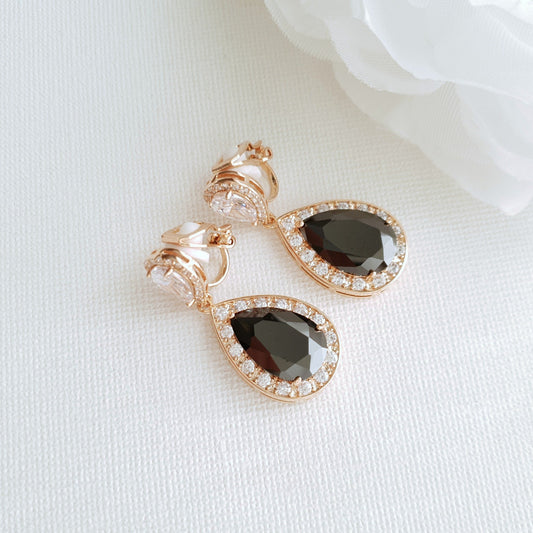 Black Clip On Drop Earrings in Rose Gold-Zoe