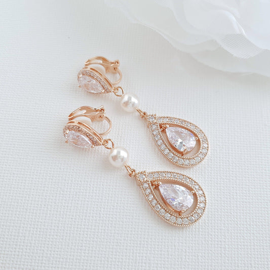 Rose Gold Wedding Earrings with Clip On-Evelyn
