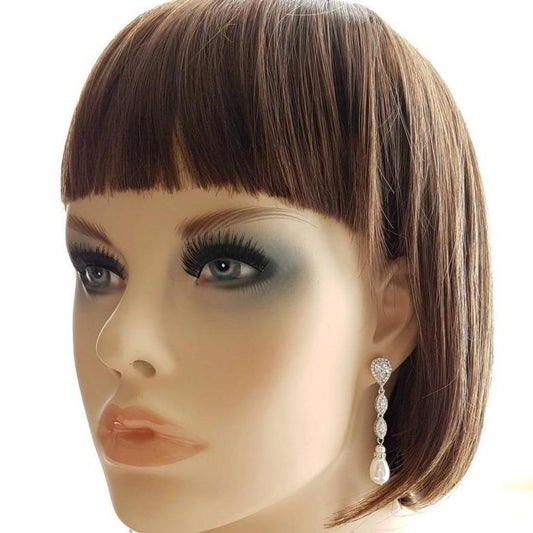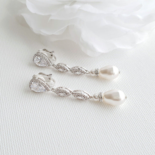 Clip On Pearl Drop Wedding Earrings-Nicole