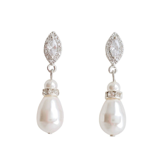 Teardrop Pearl Earrings for Weddings in Silver- Ella