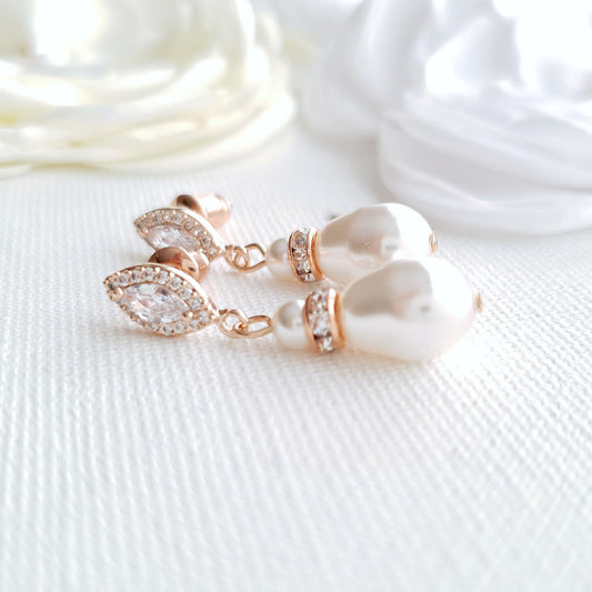Rose Gold Pearl Teardrop Earrings for Brides- Ella