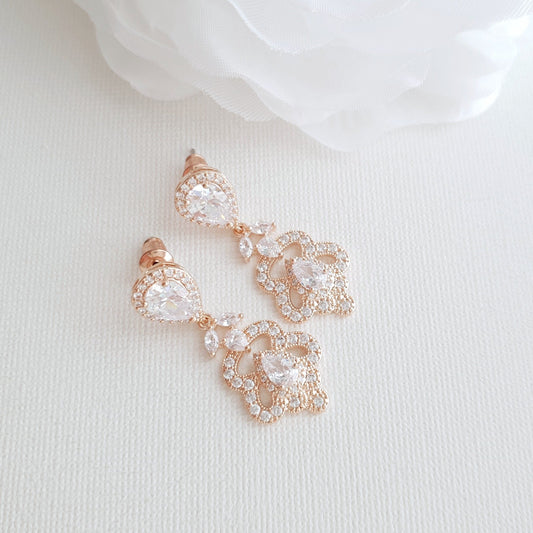 Small Bridal Earrings With Oval Crystals & Rose Gold- Emily