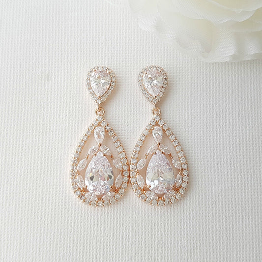 Drop Rose Gold Earrings for Brides & Weddings- Sarah