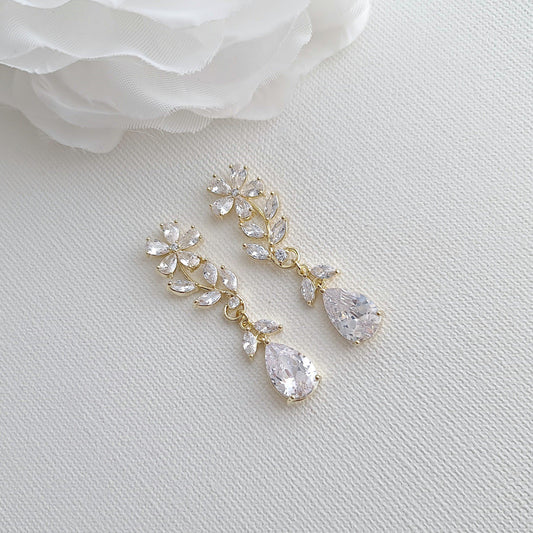 Yellow Gold Bridal Earrings in Cubic Zirconia for Brides-Esther