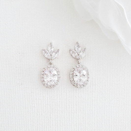 Small Pear Shaped Crystal Bridal Drop Earrings in Silver- Hazel