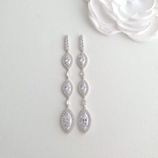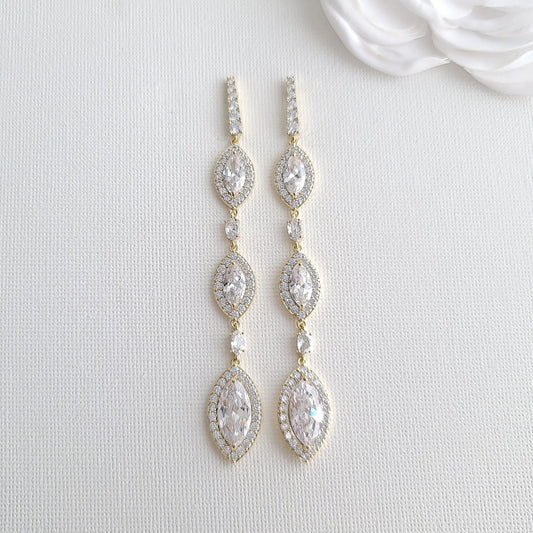 Extra Long Marquise CZ Earrings in Yellow Gold- Harriet