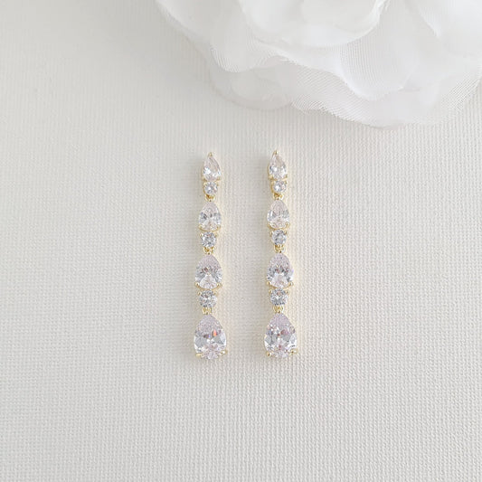 Gold Earrings with Small Teardrops for Weddings-Hazel