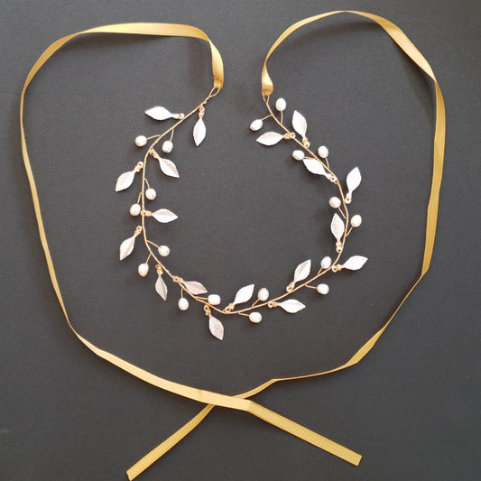 Rose gold Leaf Headband with Pearls-Sweet Peas
