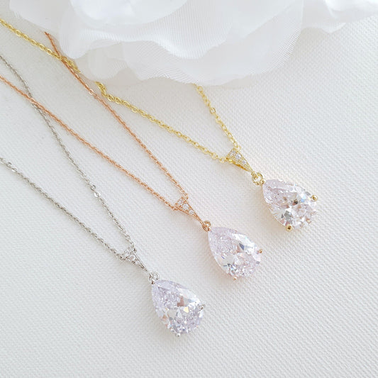 Clear Cubic Zirconia Teardrop Necklace-Clara