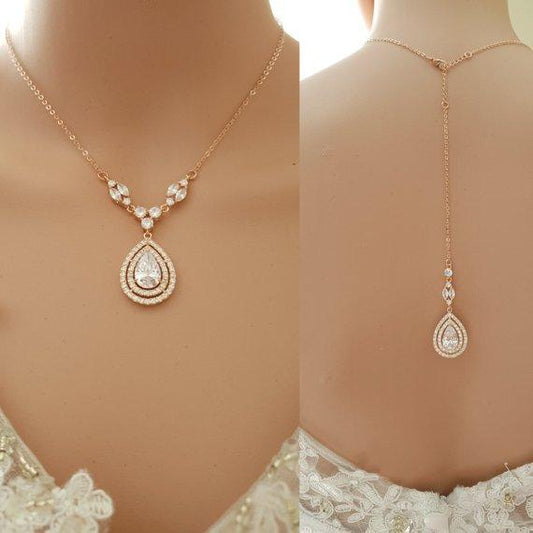 Long Back Necklace for Wedding, Prom, Event Backless Dresses-Sadie