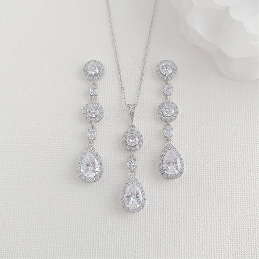 Earrings With Long Pendant Necklace Wedding Jewelry Set-Reagan