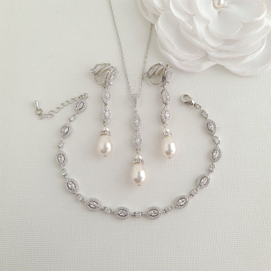 Bridal Jewelry Set With Clip On Earrings Necklace Bracelet- Abby
