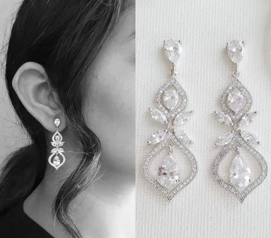 Teardrop Wedding Earrings for Brides Silver- Meghan