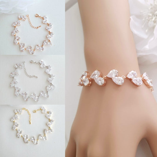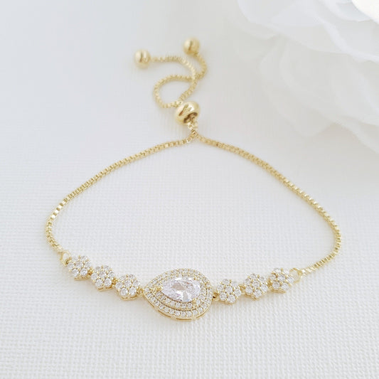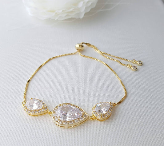 Small CZ Teardrop Gold Wedding Bracelet-Ivy