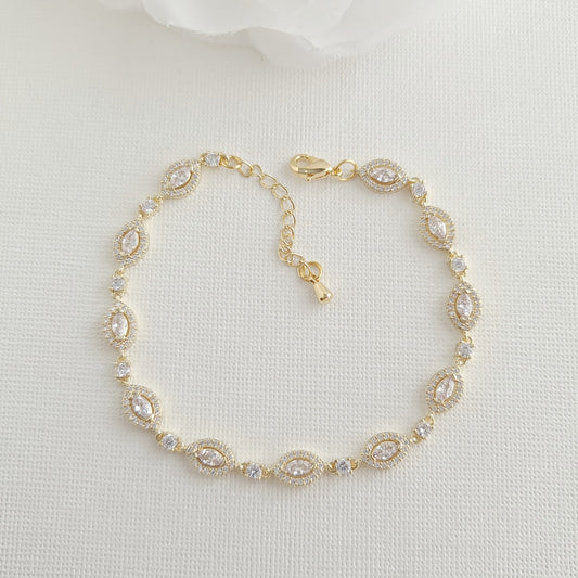 Delicate Gold Bracelet for Brides & Ladies in Marquise Cubic Zirconia( CZ) for Wedding Or Prom- Leila