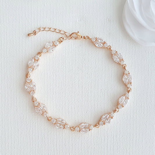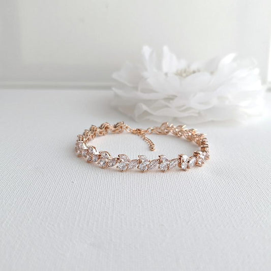 Rose Gold Tennis Bracelet in Leaf Shape Cubic Zirconia for Weddings & Formals-Debra