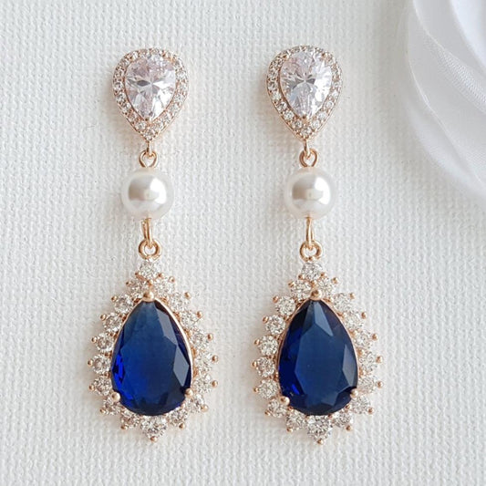 Sapphire Blue Drop Earrings Rose Gold- Aoi
