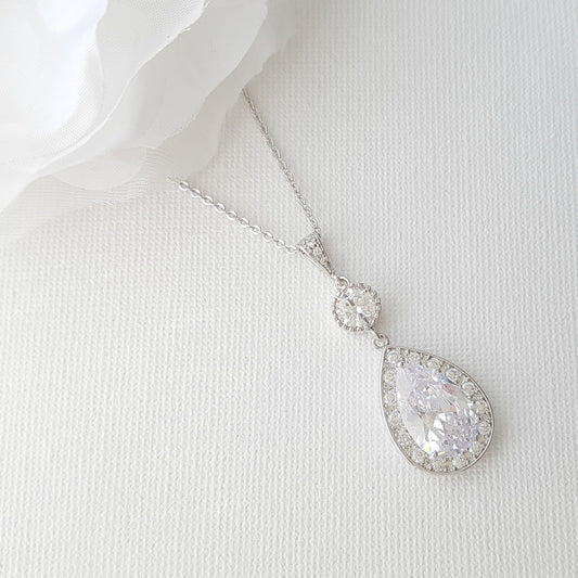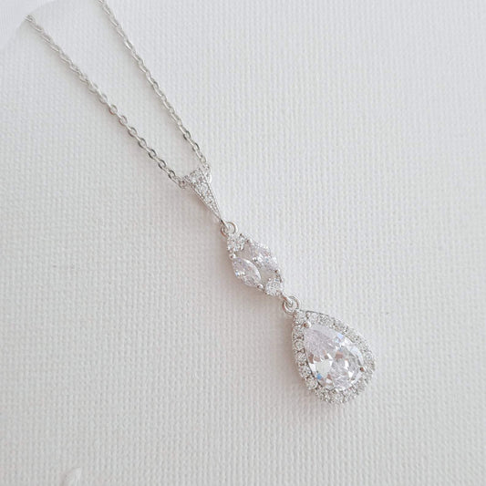 CZ Drop Pendant Necklace in Silver for Bridesmaids & Brides-Hayley