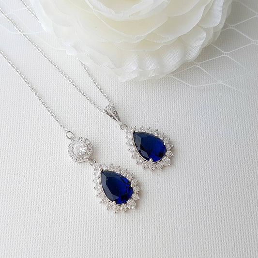 Round and Pear Shaped Drop Bridal Necklace-Evana