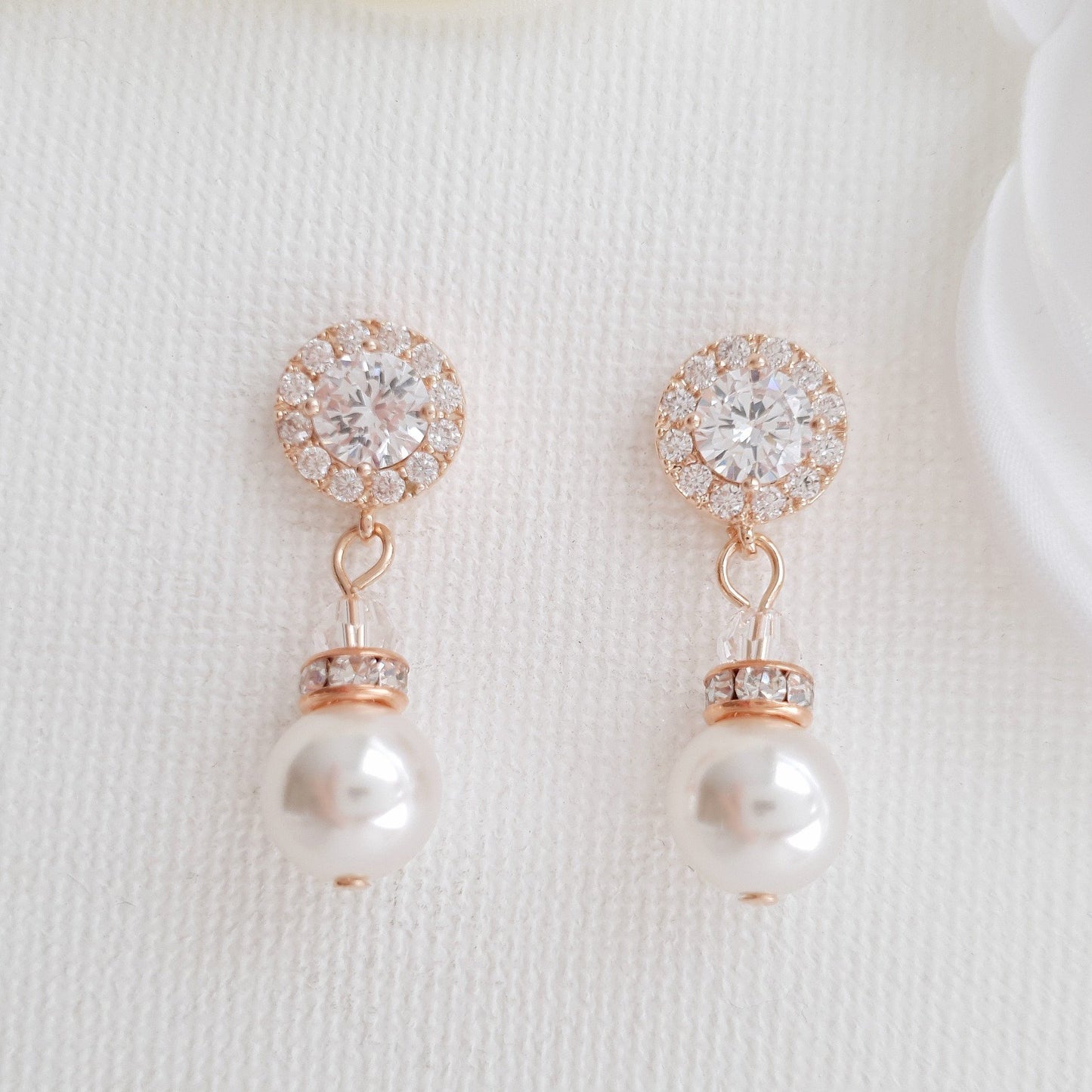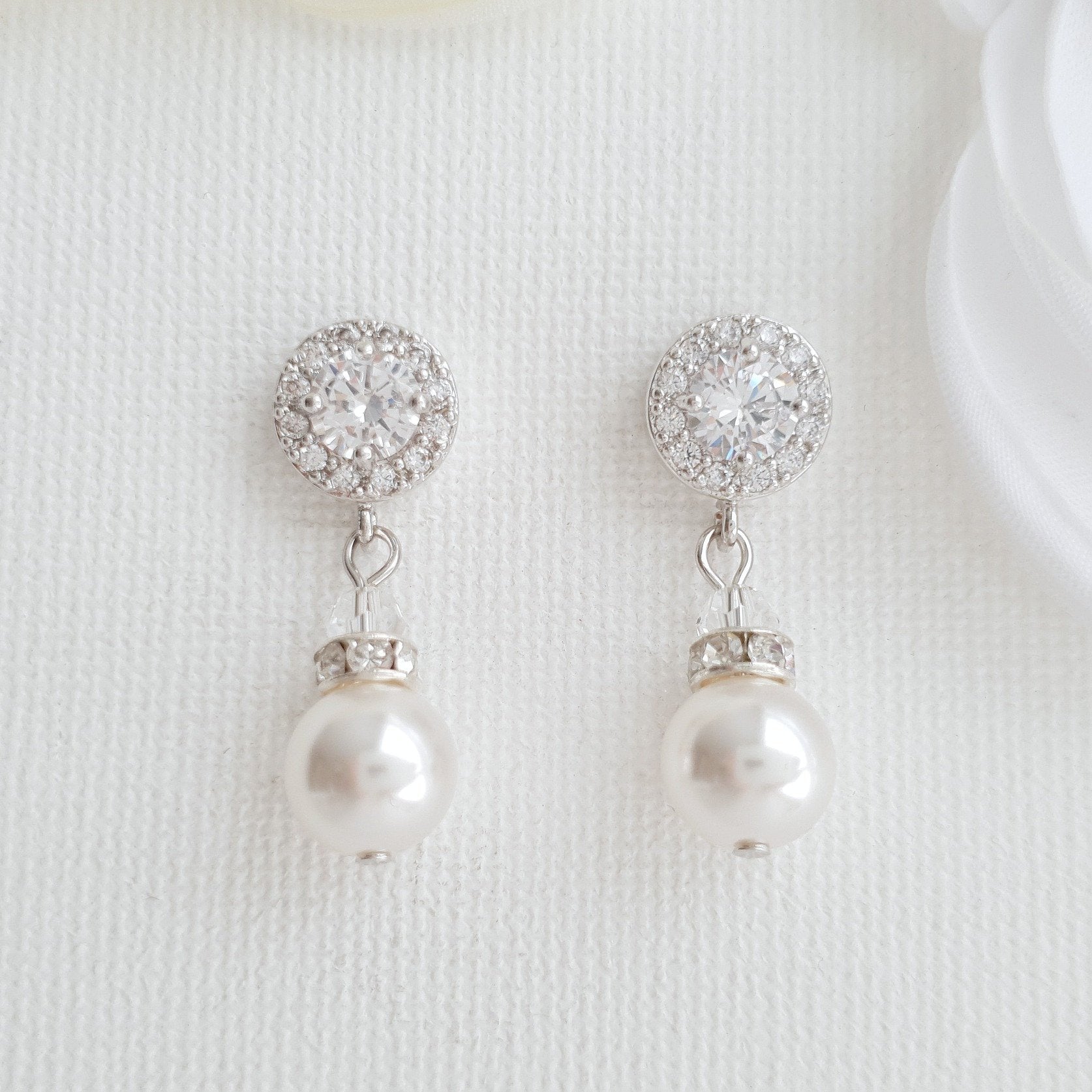 If you are looking for simple pearl drop earrings that are gorgeous for your bridesmaids and flower girls these Bronte silver pearl drop earrings are just perfect. These would also be simple and elegant small bride earrings for an elegant and sparkly bridal look.