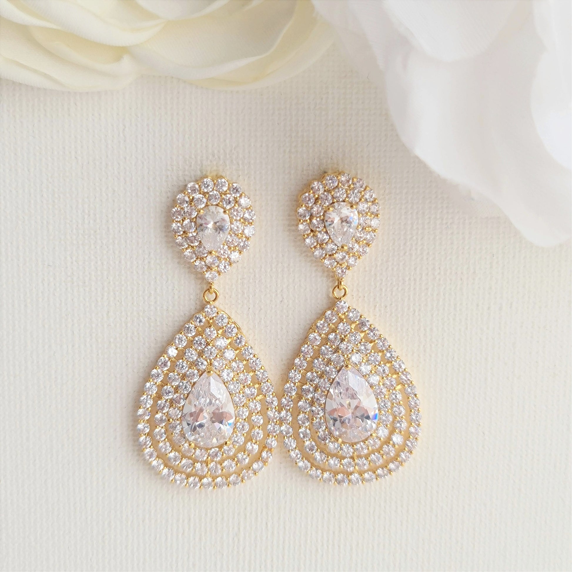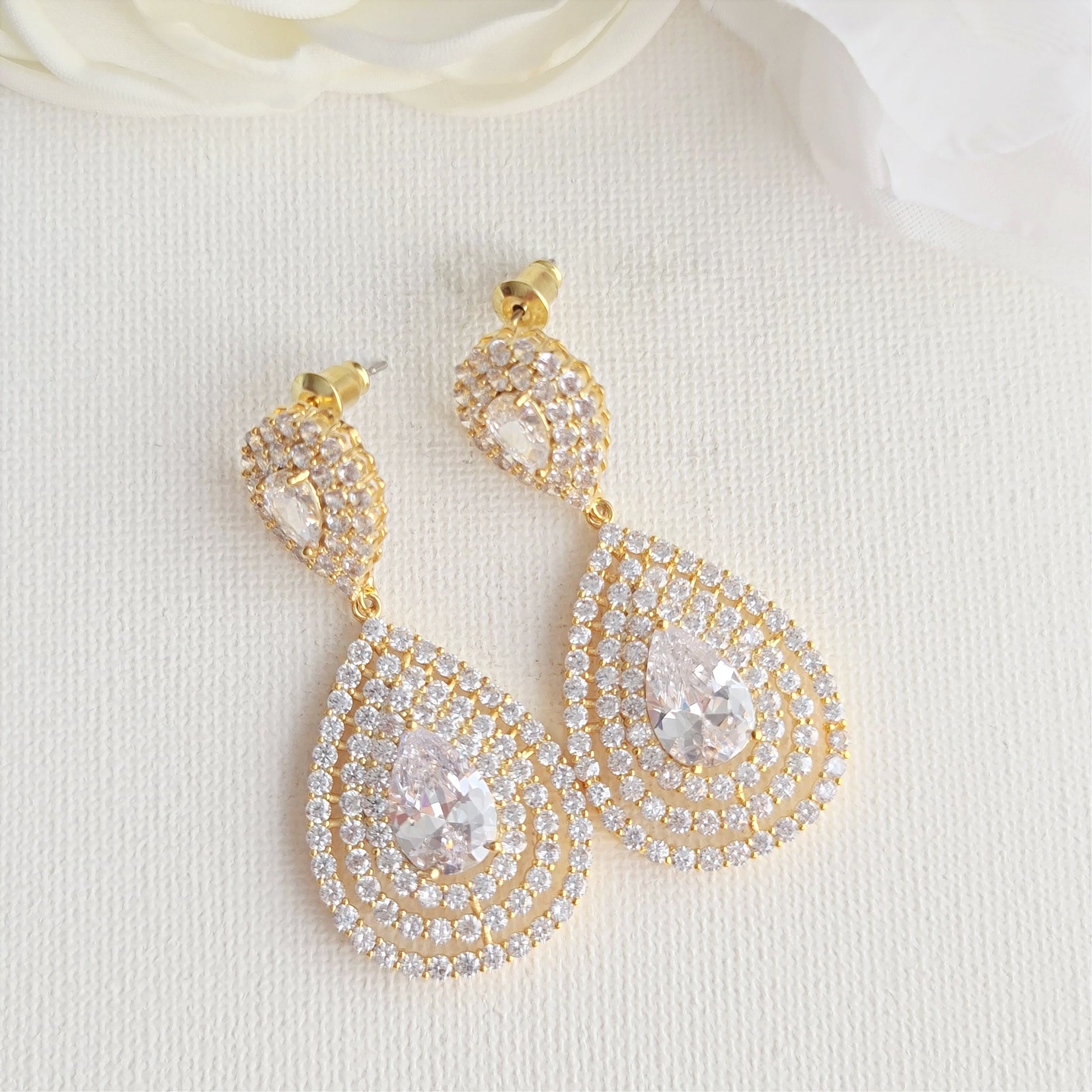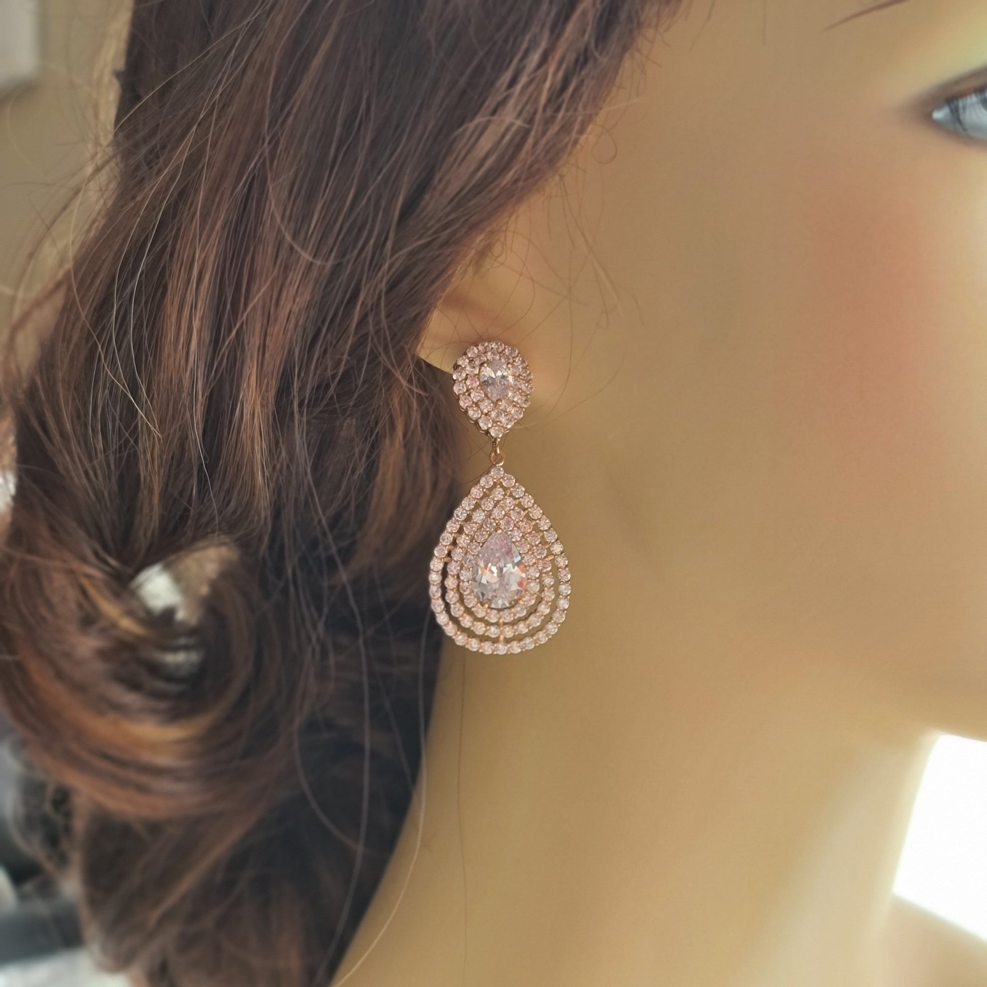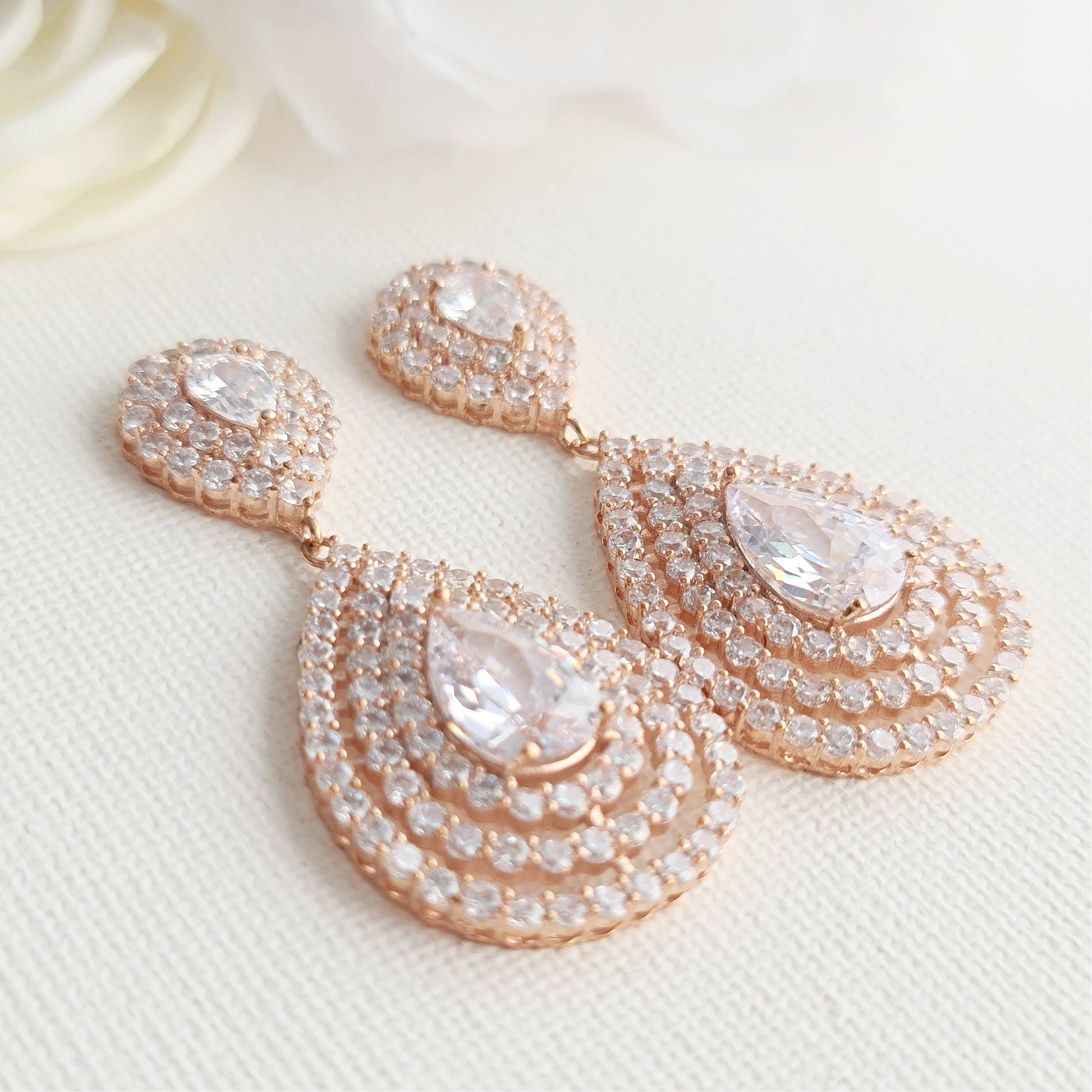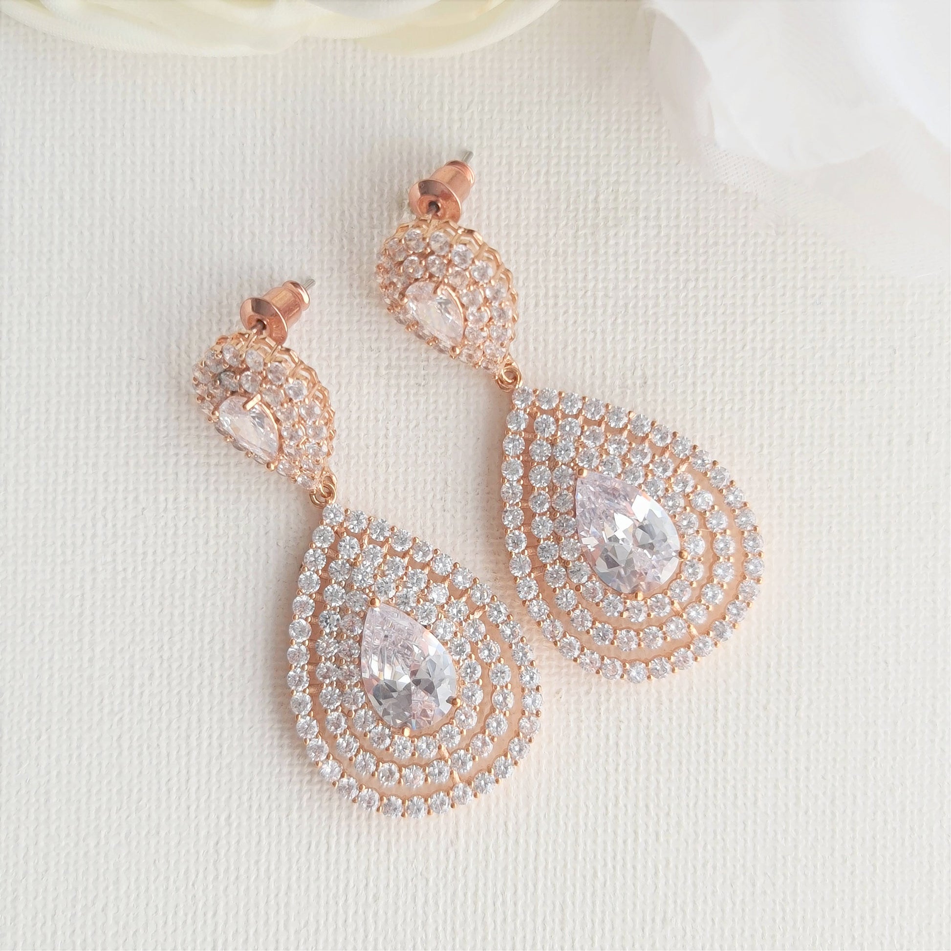 Drop Earrings for Brides in Rose Gold & CZ Crystals