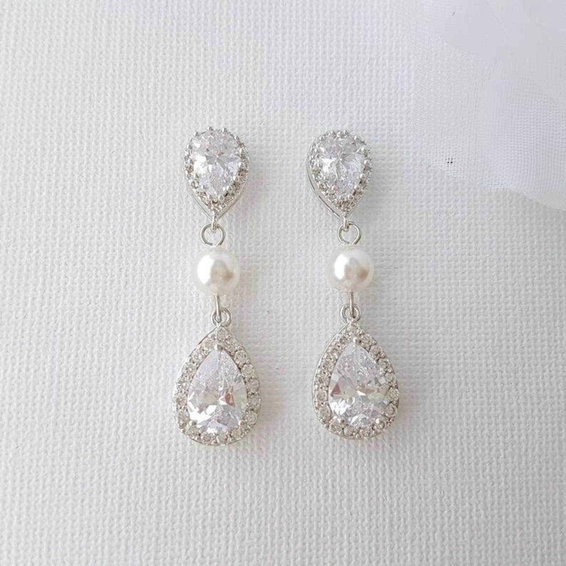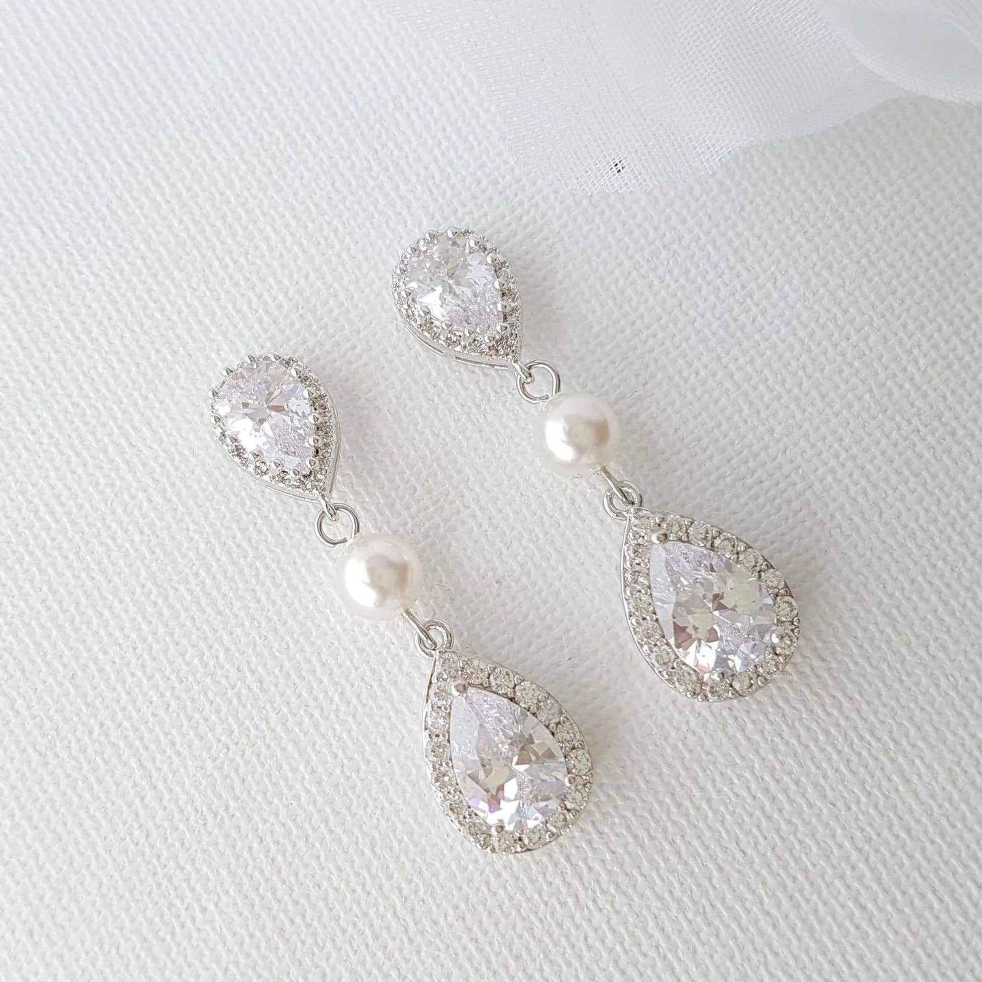 Earrings:- Made with Teardrop cubic zirconia ear top and a drop, has a small pearl in cream or white colors. The ear pins are made of stainless steel, hence suitable for many brides and bridesmaids. They are light on your ears and comfortable to wear. The measurement of the earrings 1.5 inches or 3.8 cms in length.