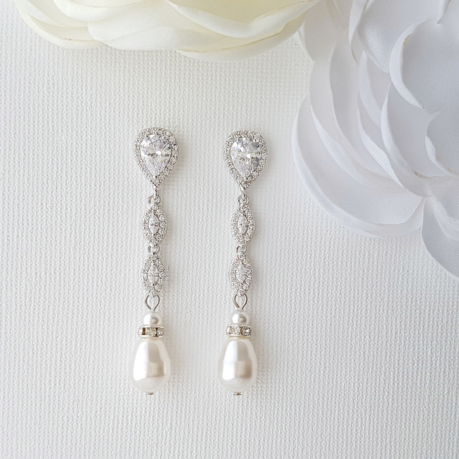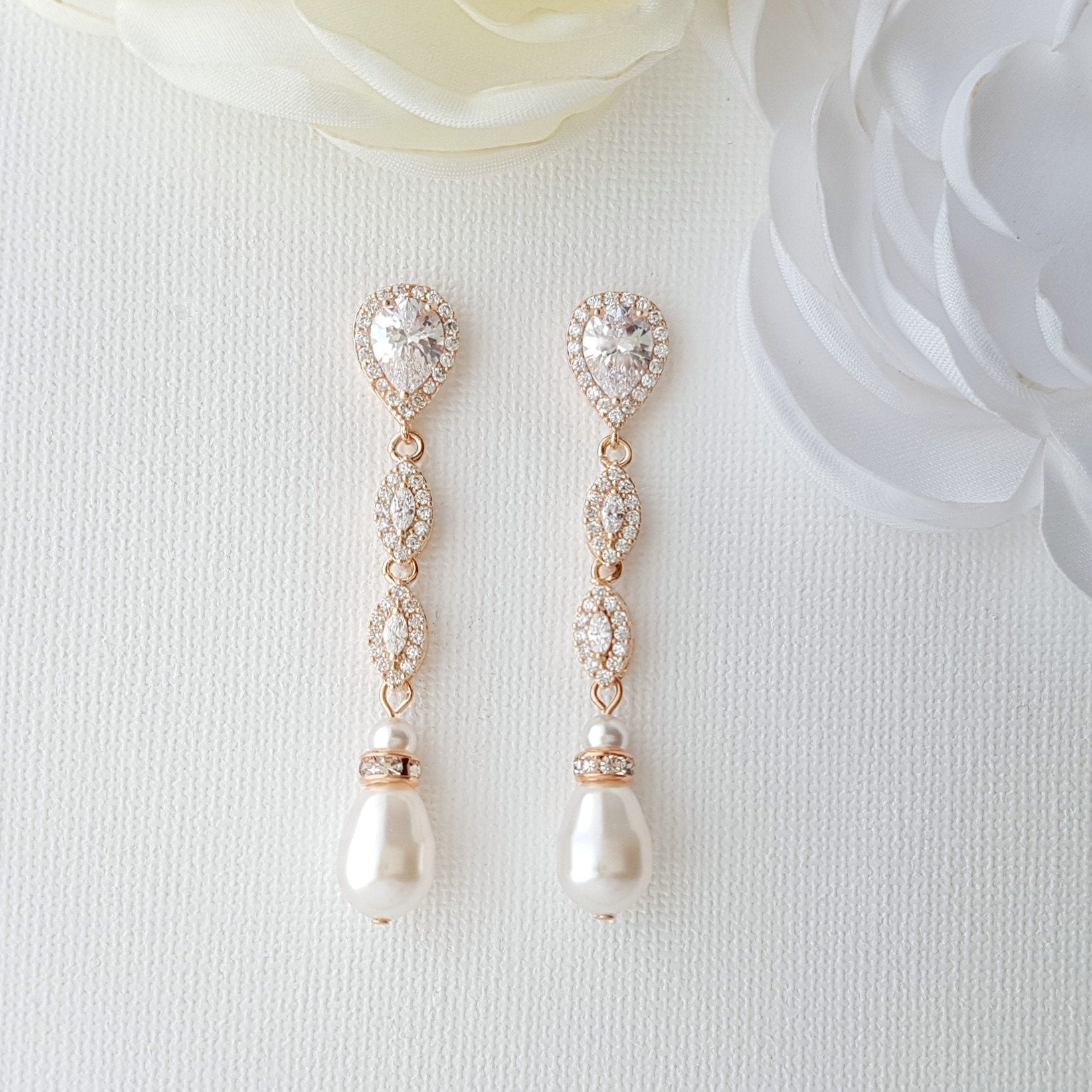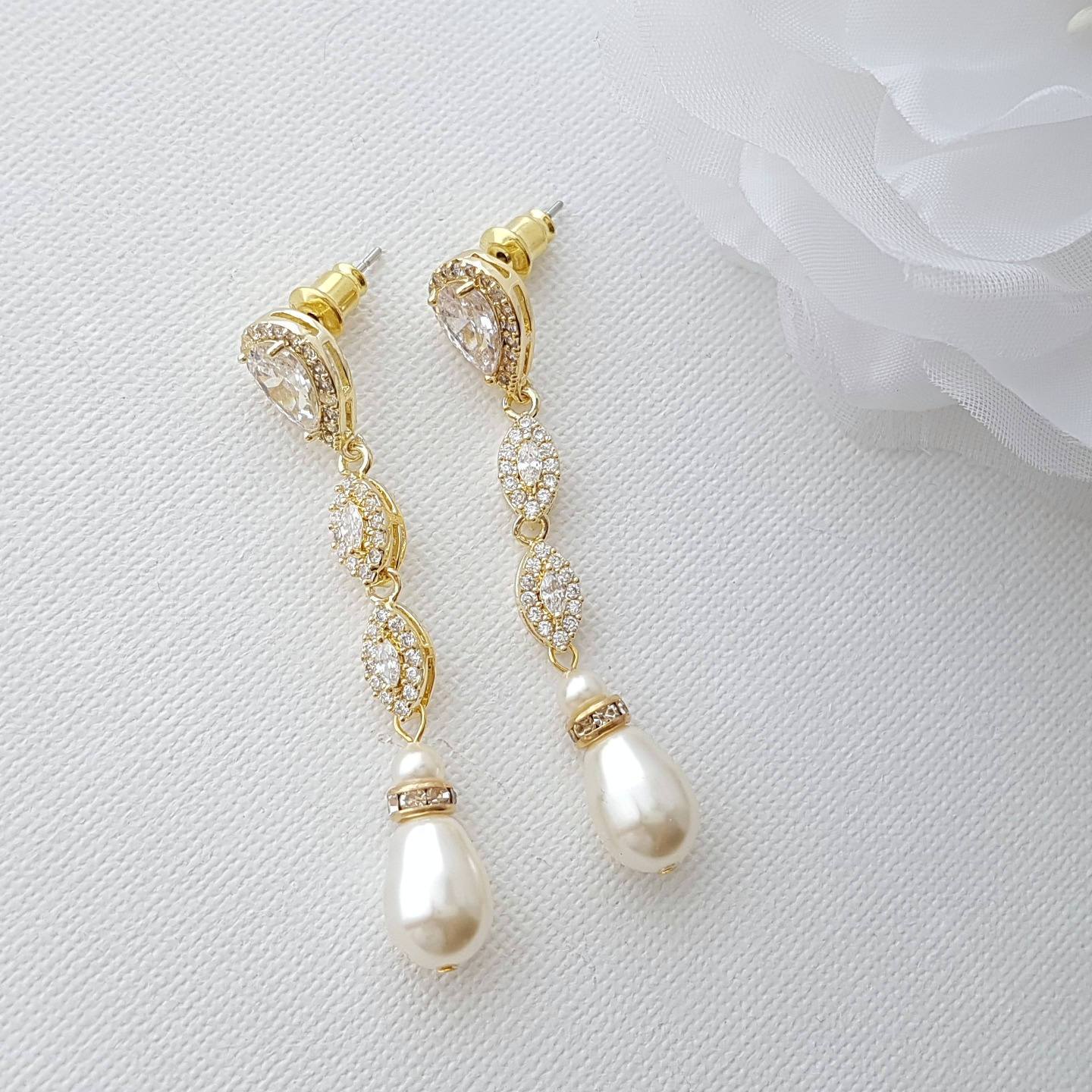 Delicate 14k Gold Plated Pearl Drop Wedding Earrings