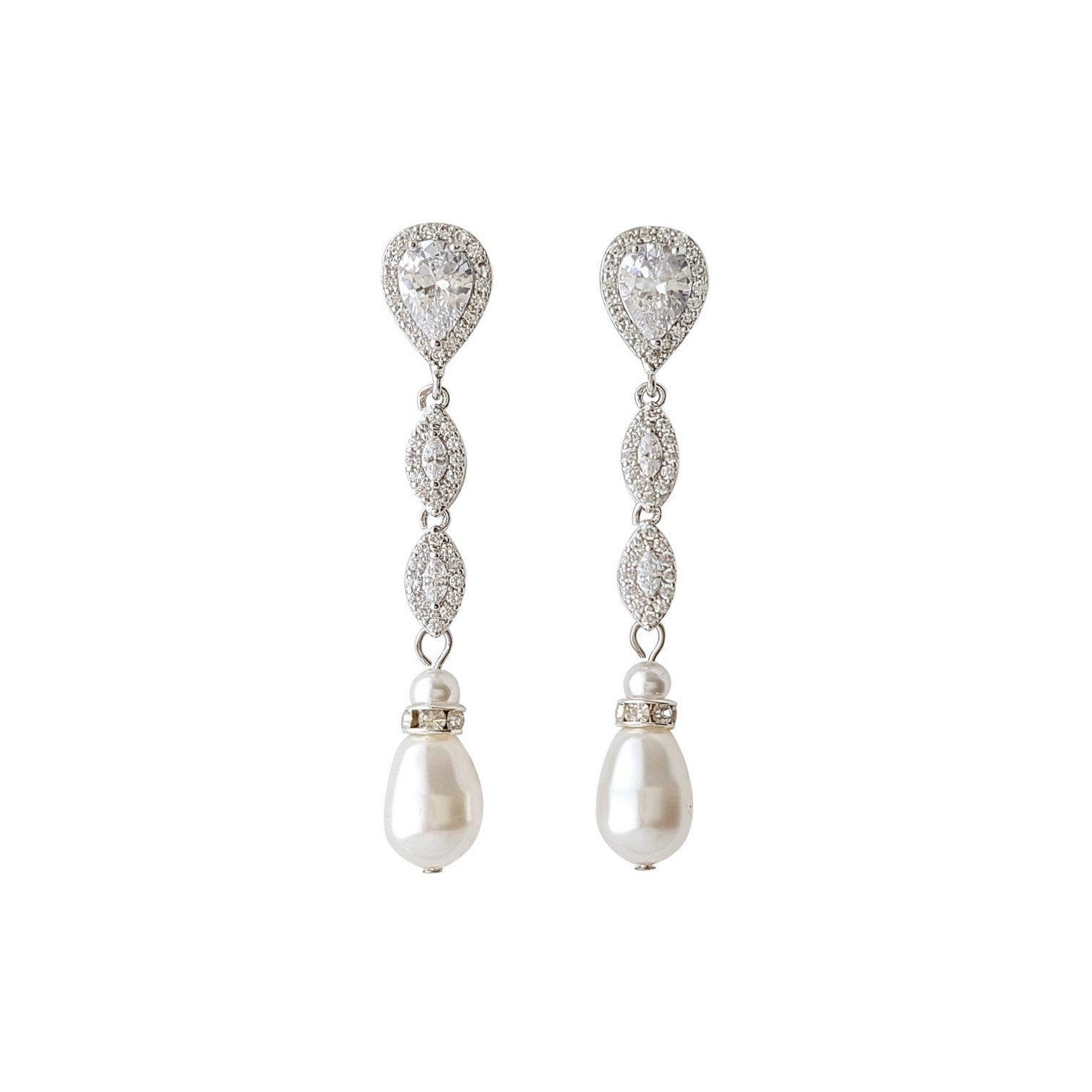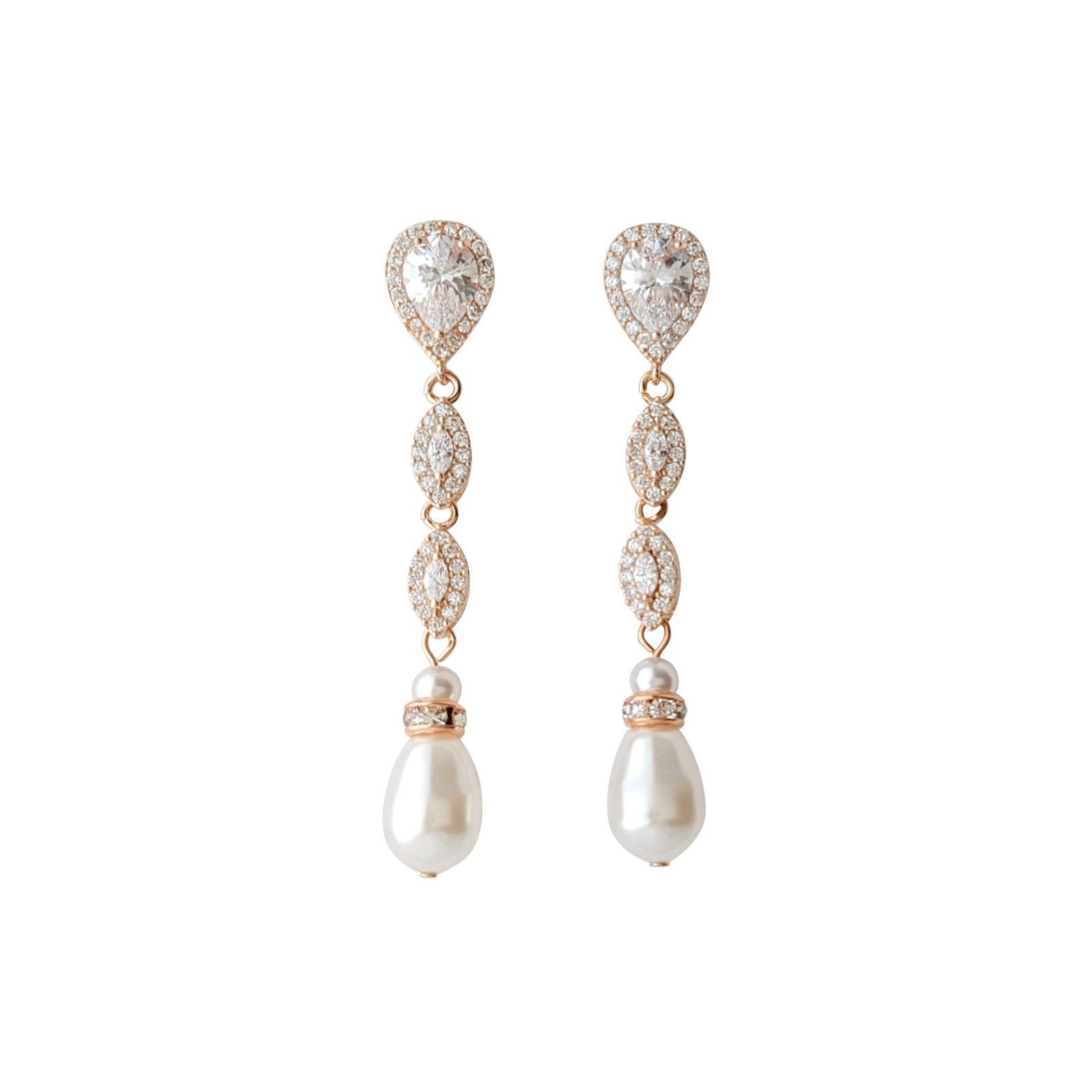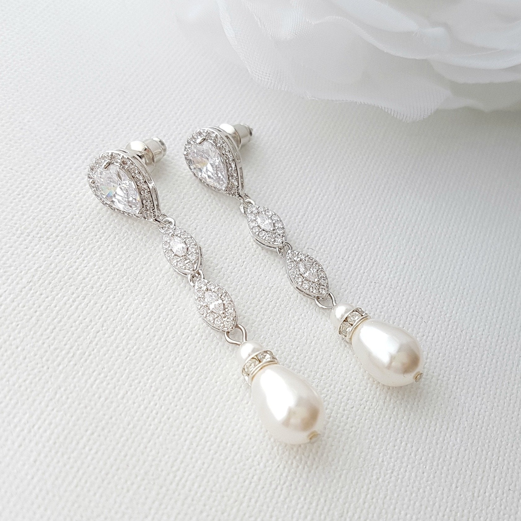 Delicate 14k Gold Plated Pearl Drop Wedding Earrings