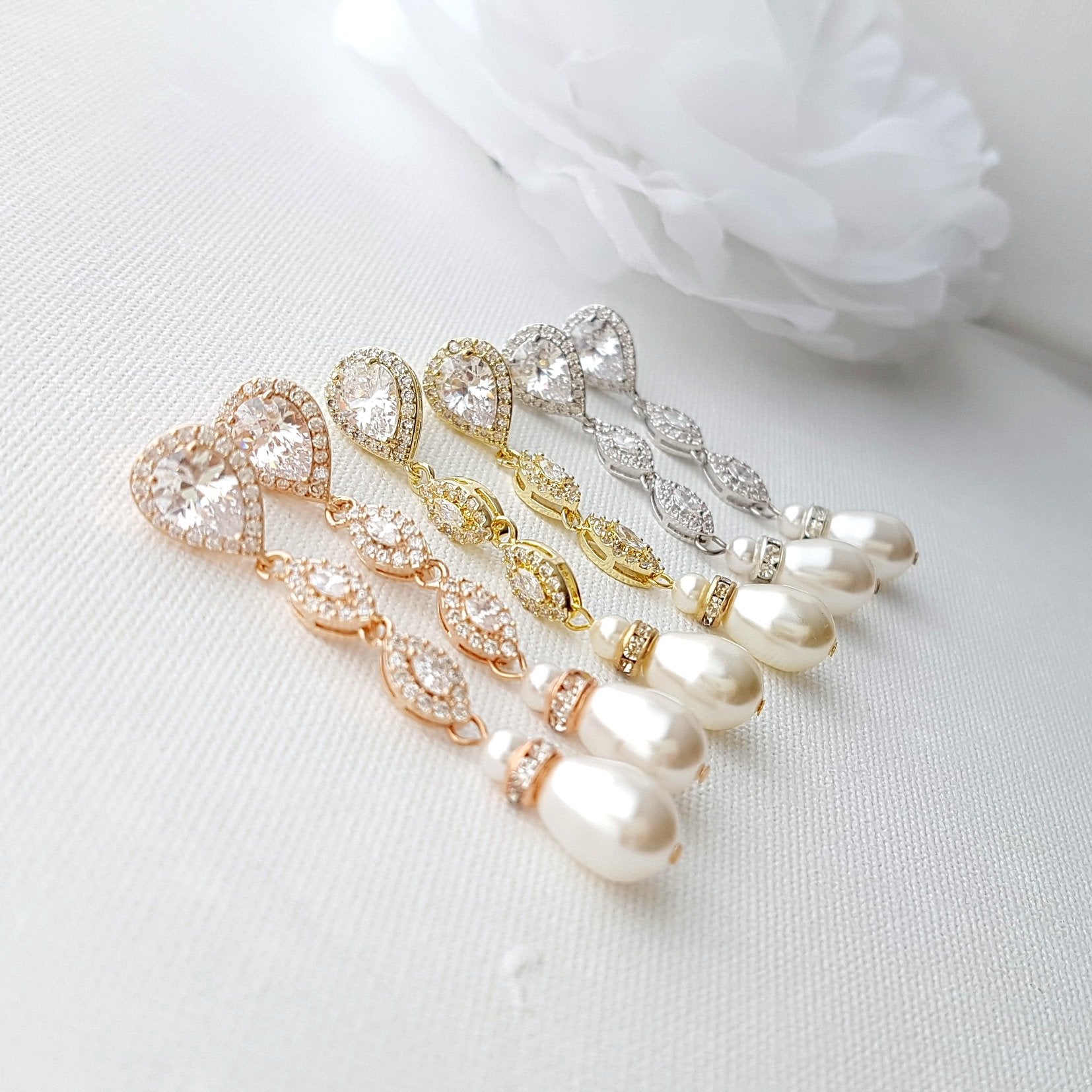 The earrings are available in two pearl colors of white/ ivory or cream and three finishes of gold, silver, and rose gold to choose from. Must have these gorgeous gold & pearl combination earrings for your wedding day and wear them long after on every occasion.