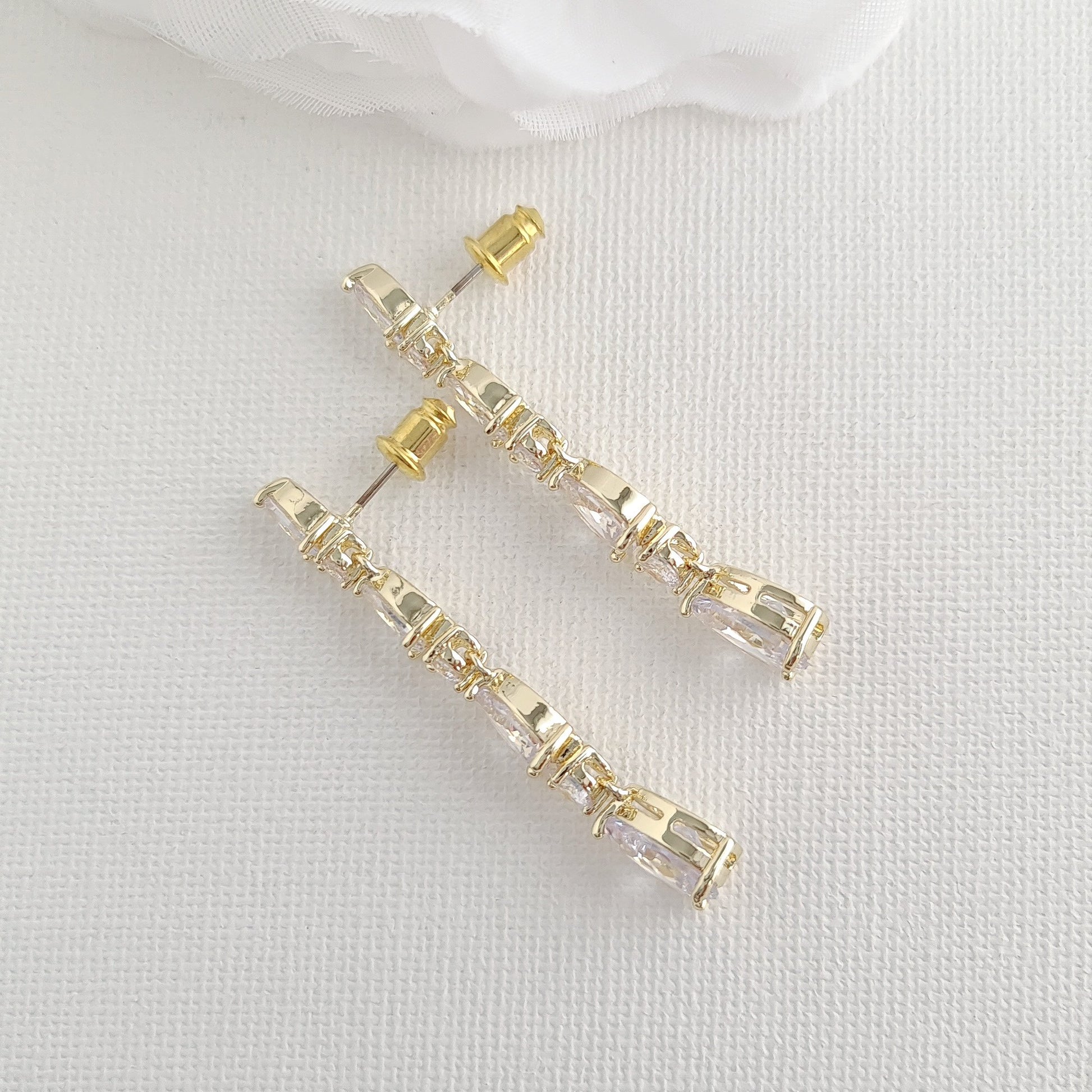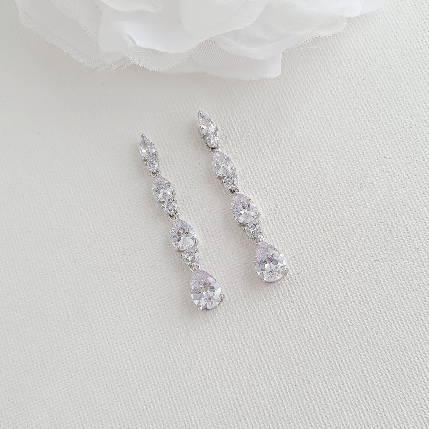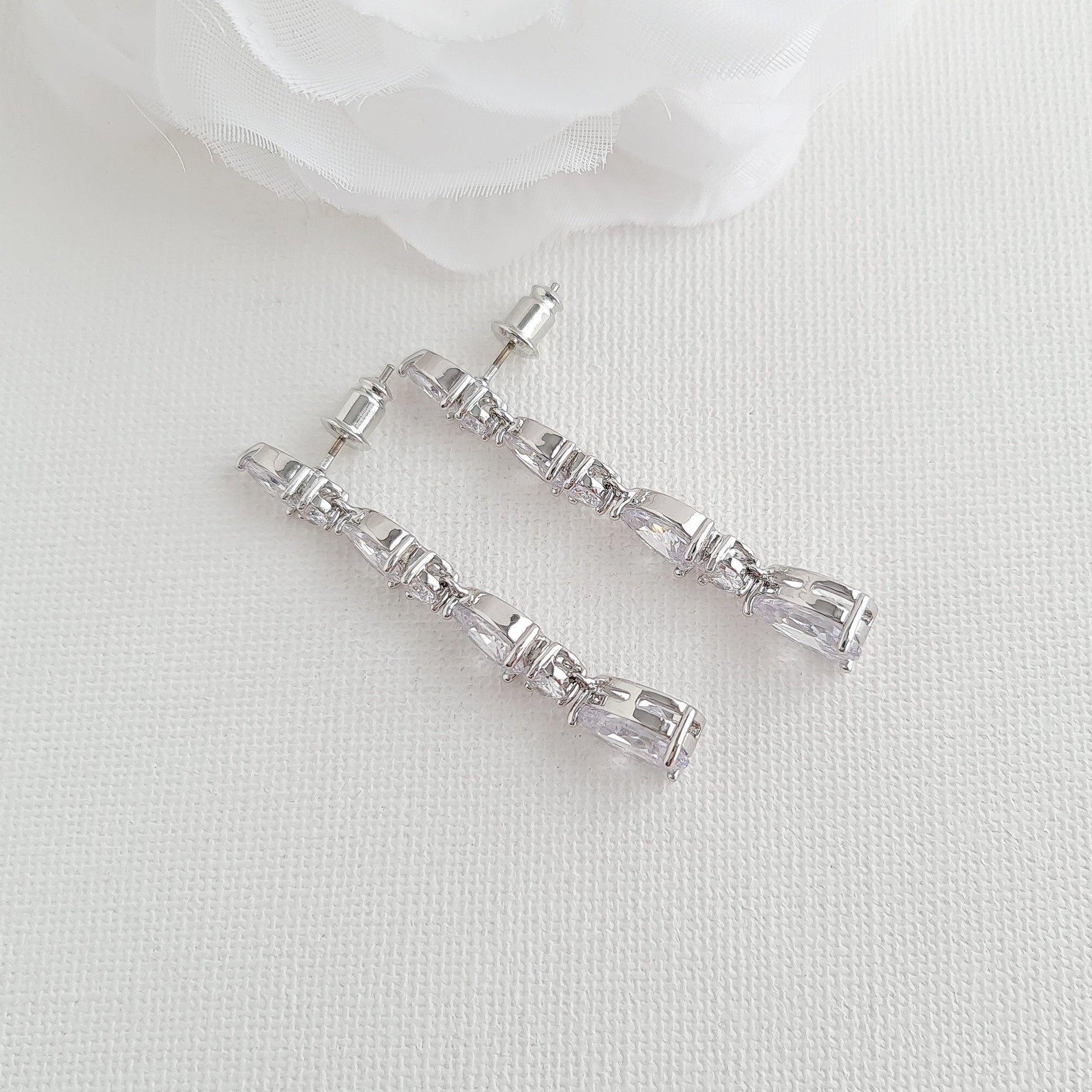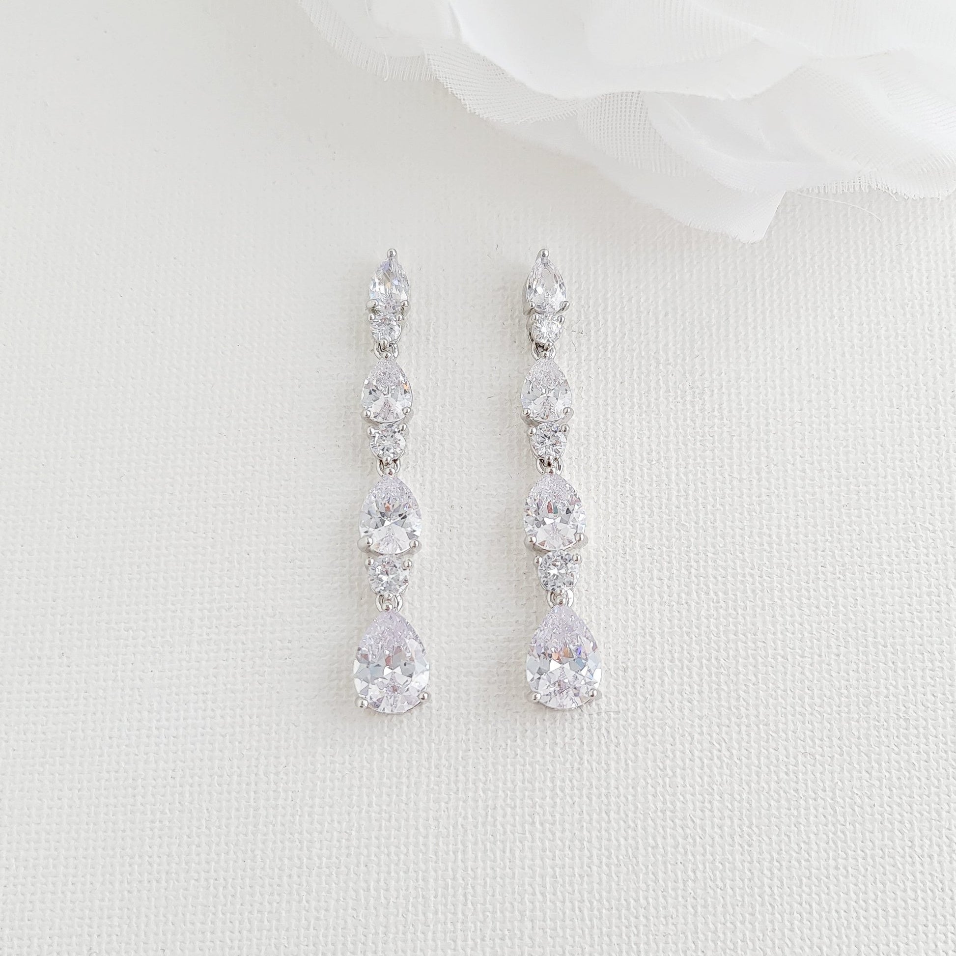 Small Pear Shaped Crystal Bridal Drop Earrings in Silver- Hazel