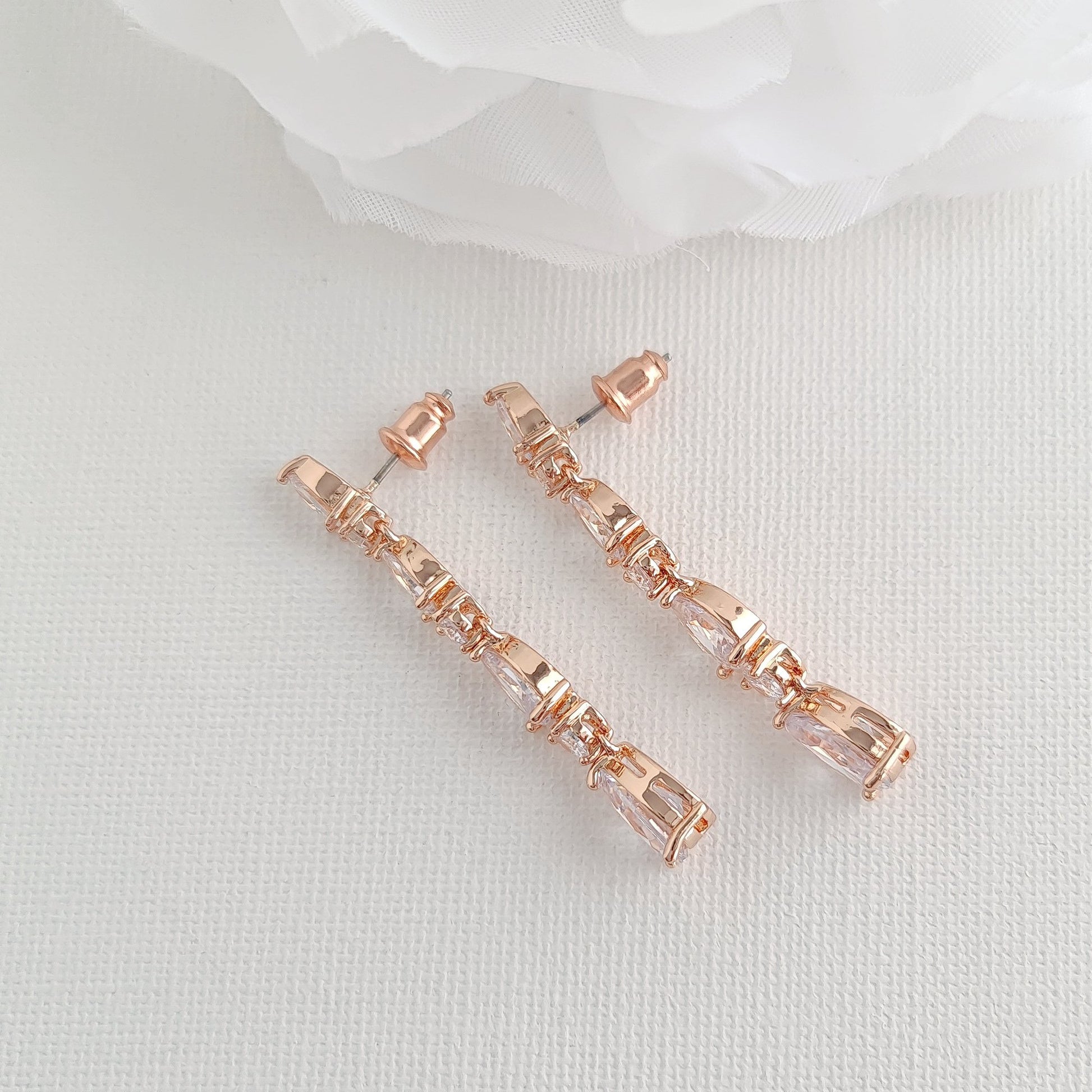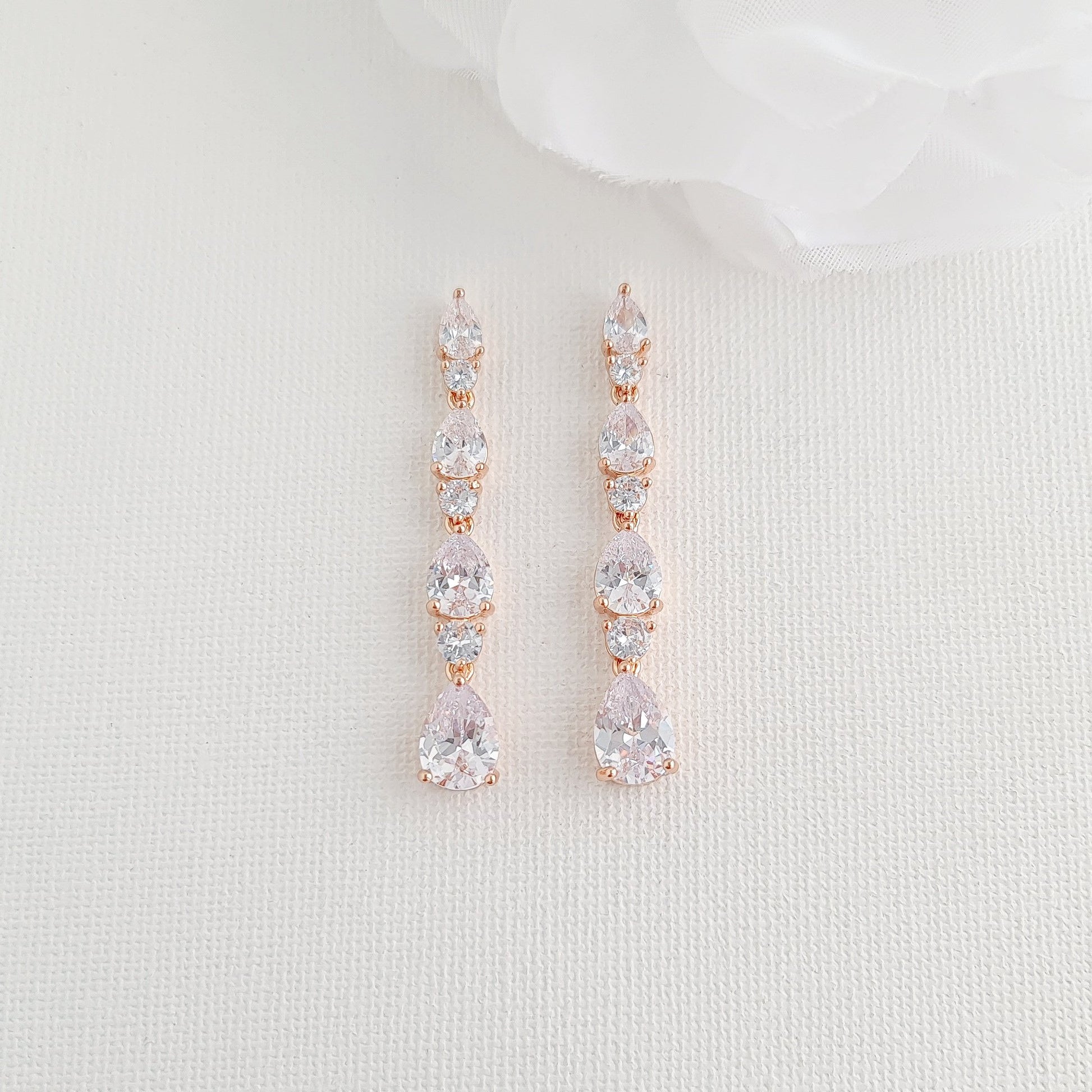Rose Gold Earrings Made of Small Cubic Zirconia Teardrops for Brides