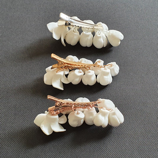Bridal Hair Clip with White Flowers-Lilac