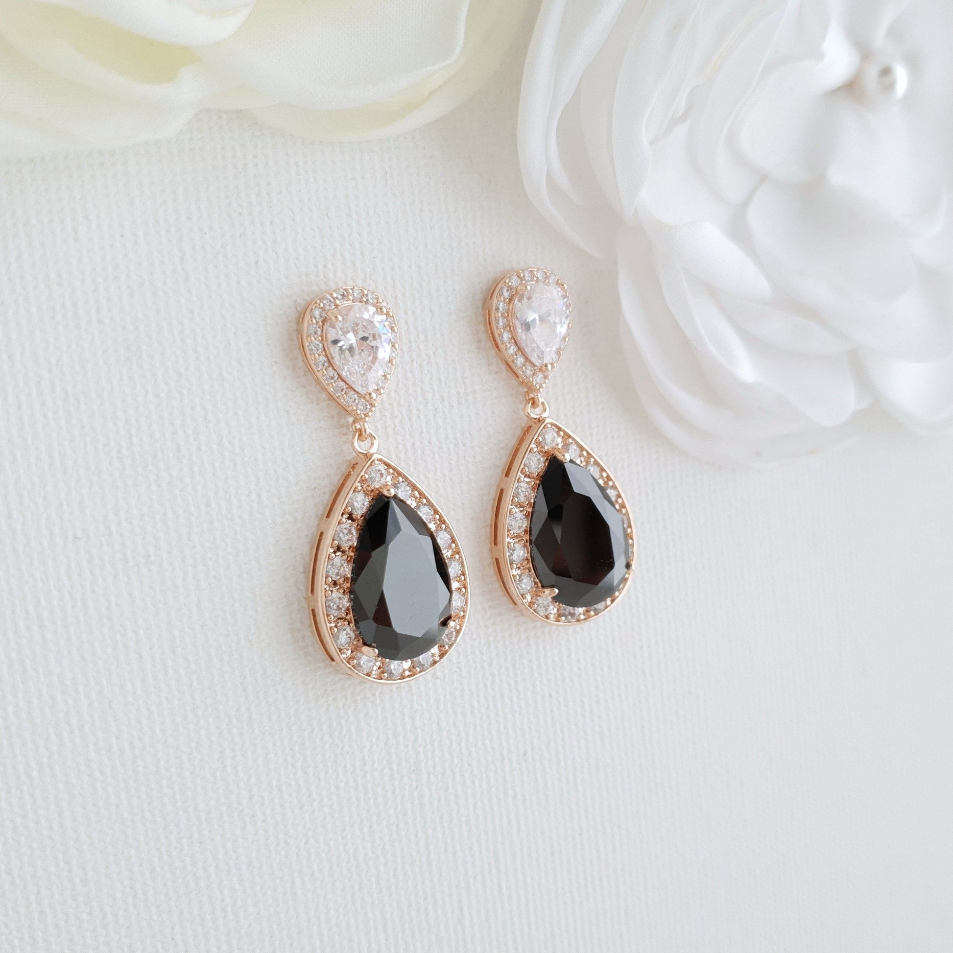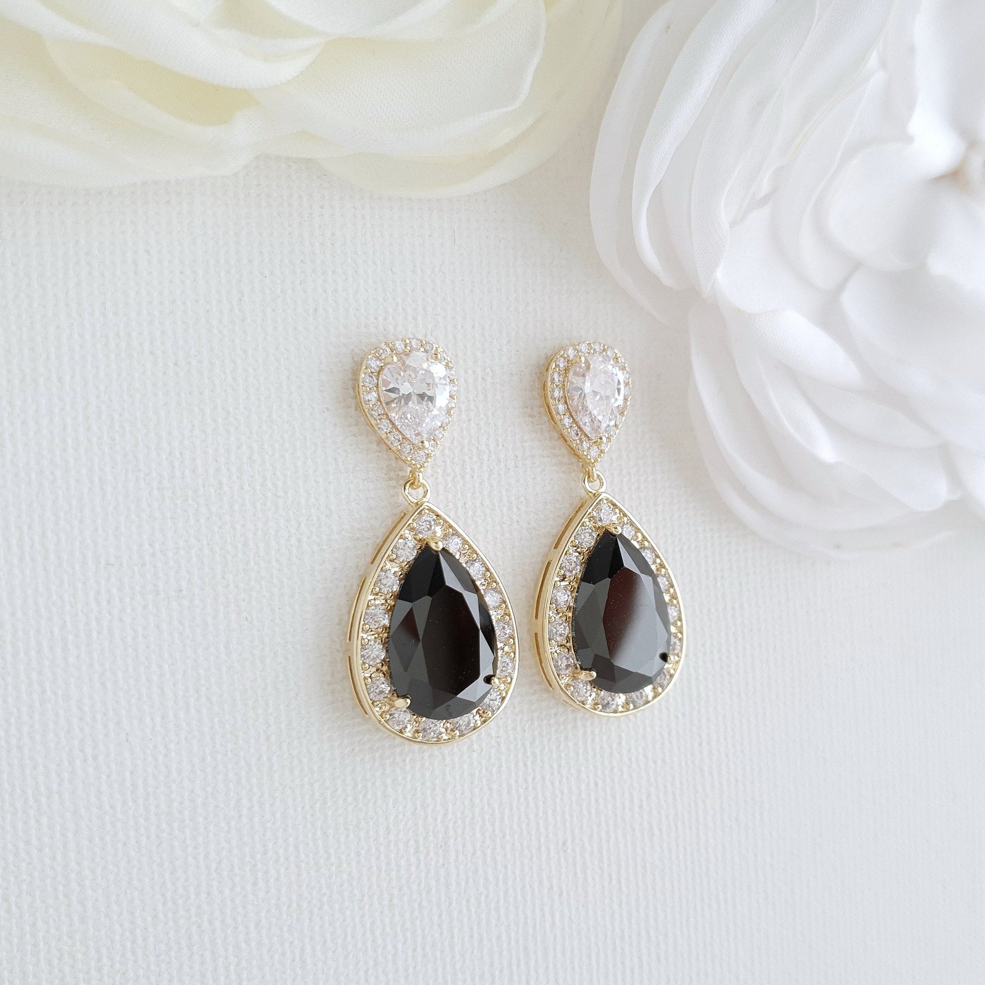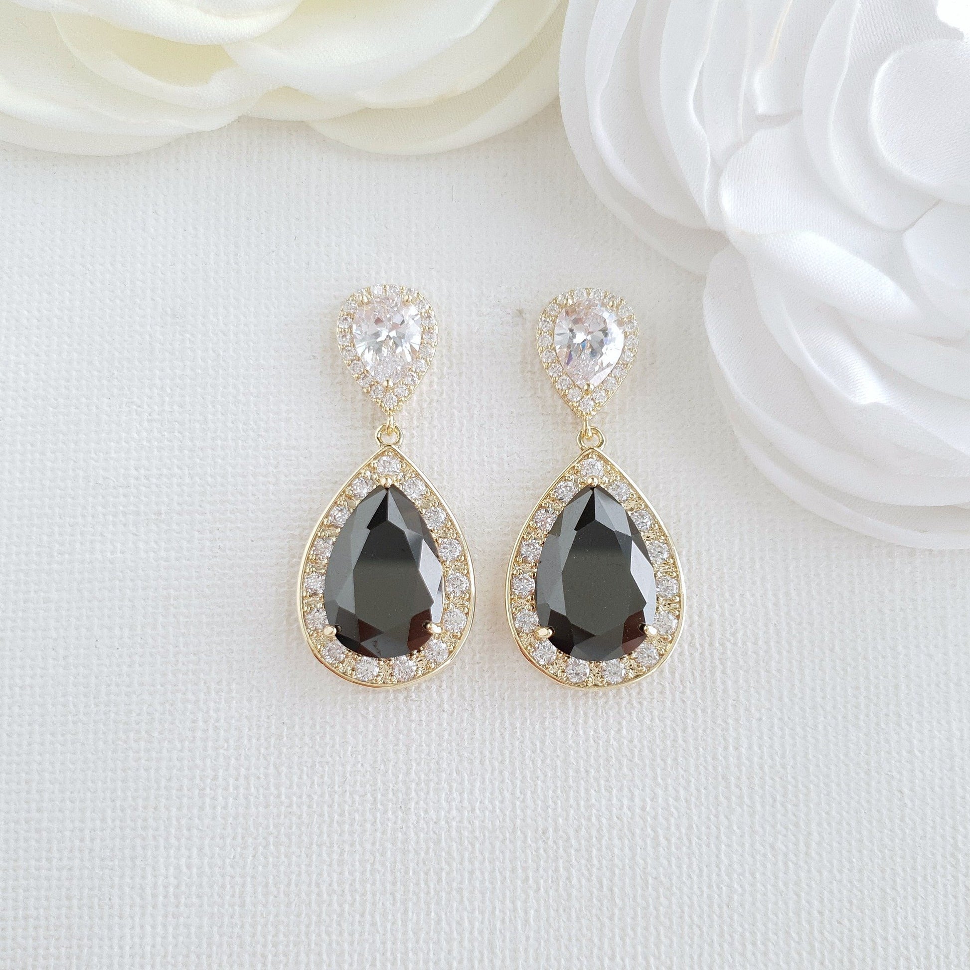 Gold Earrings with Black Teardrop for Weddings