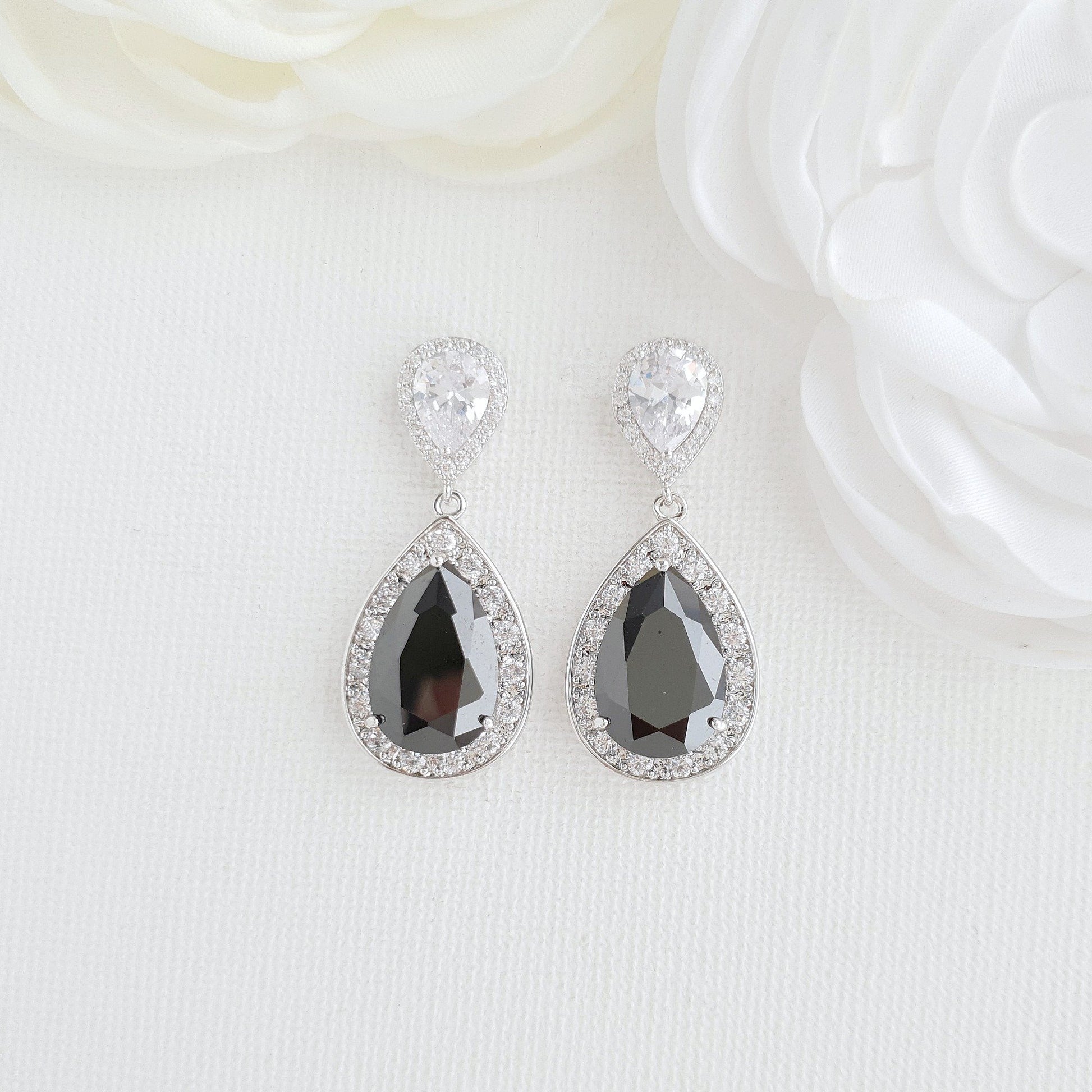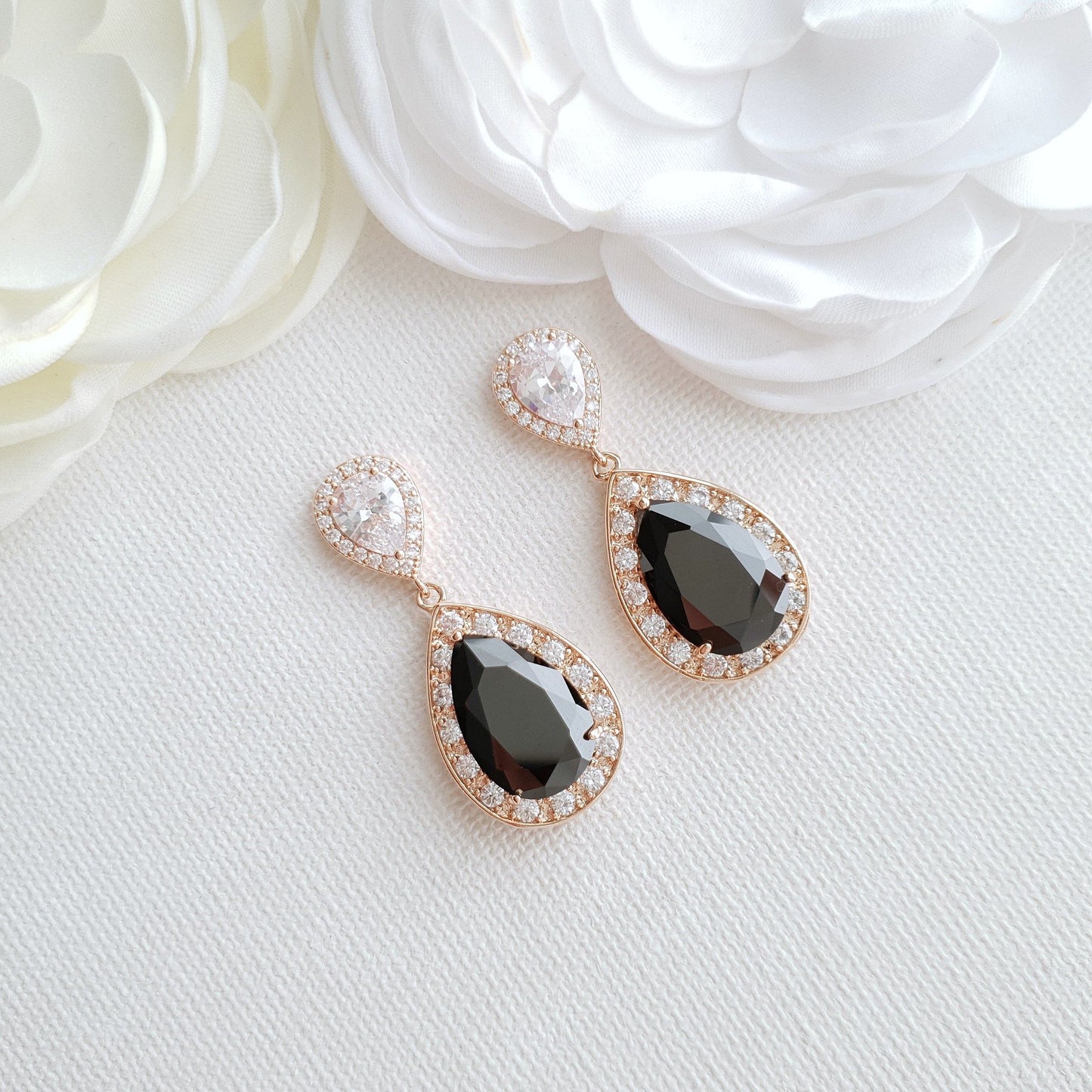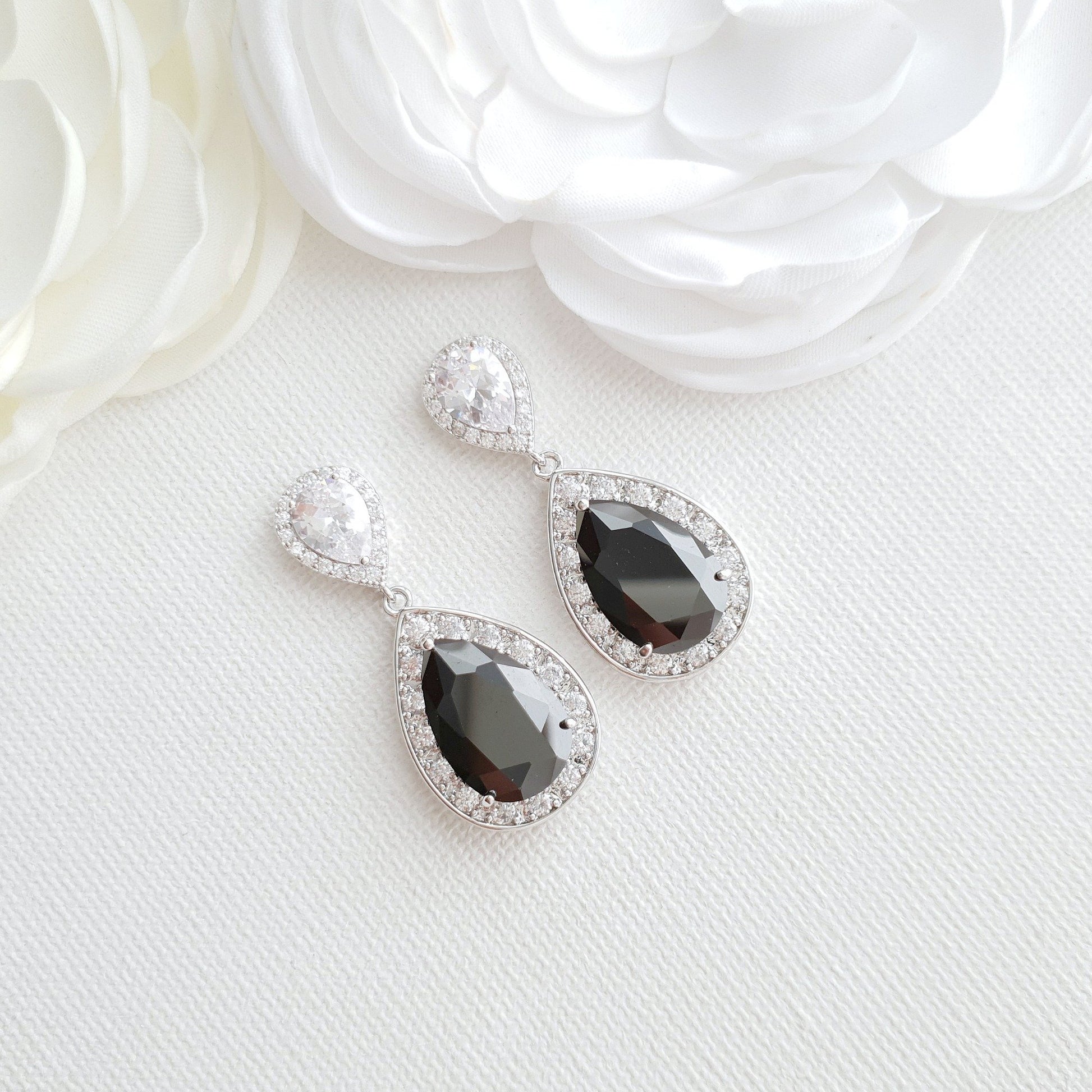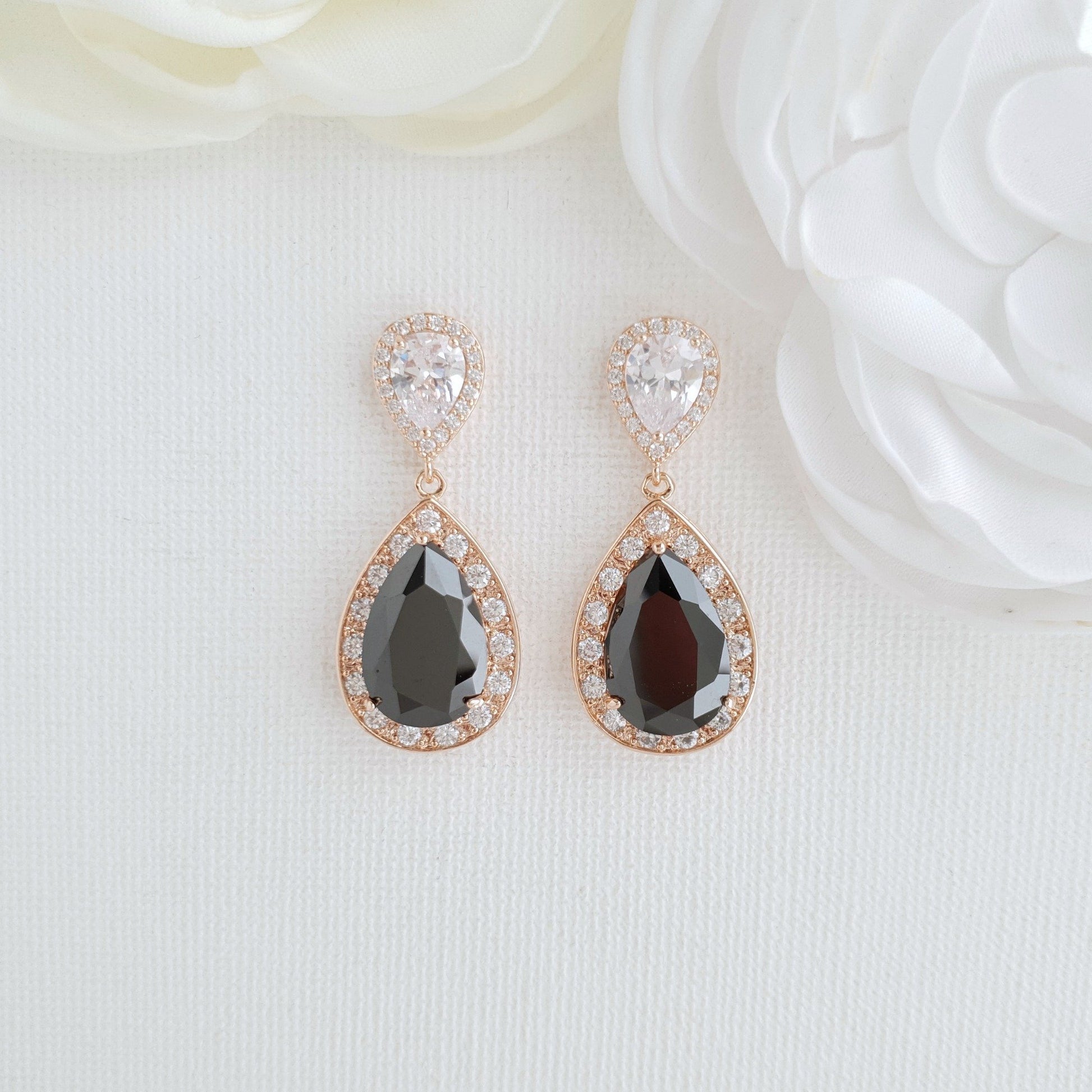Gold Earrings with Black Teardrop for Weddings