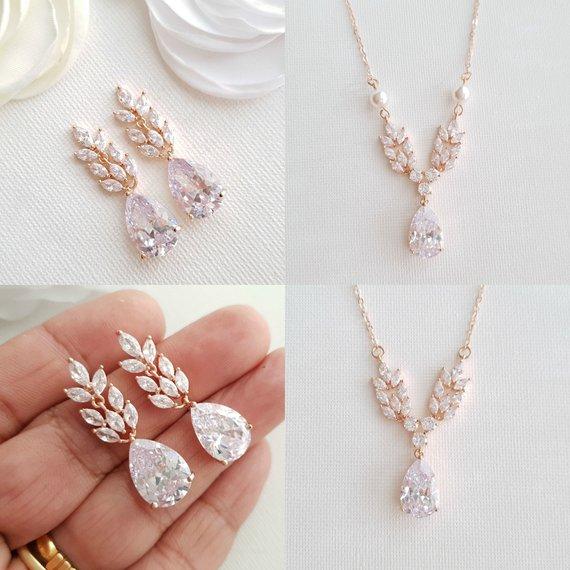 Find options to buy only the earrings, just the necklace or both as a set. They are available in the rose gold finish and 14k gold finish to suit your style.