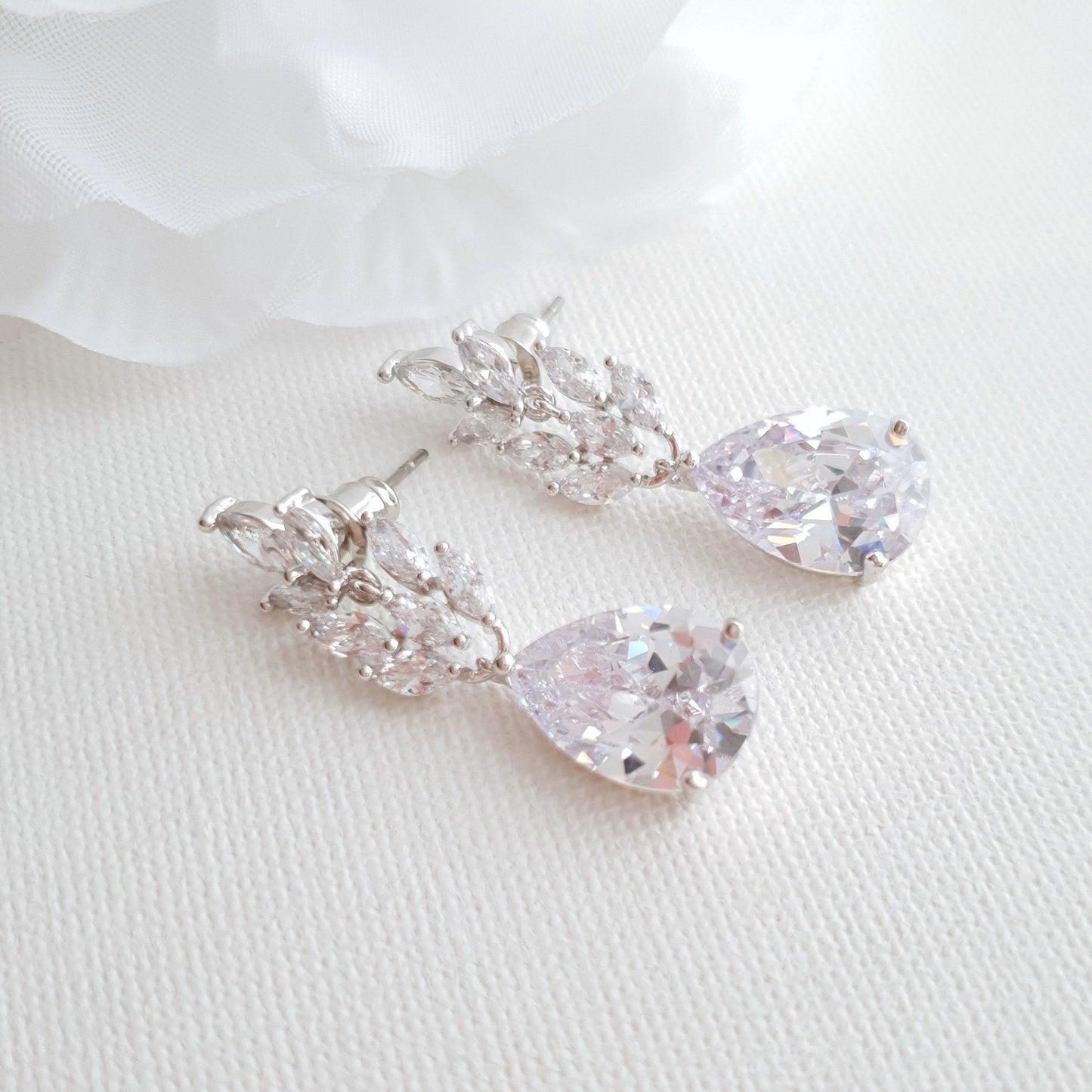 The pretty Willow Silver CZ Wedding Set with matching leaf necklace & earrings combined make a complete bridal jewelry set. These silver leaf design earrings and necklace are designed with marquise CZ crystals that are sparkly and perfect for brides, weddings, and women on special occasions. While these leaf jewelry designs are all seasons, you must definitely consider for FALL weddings.