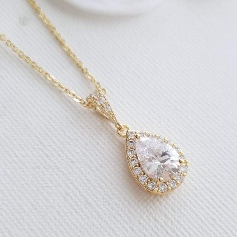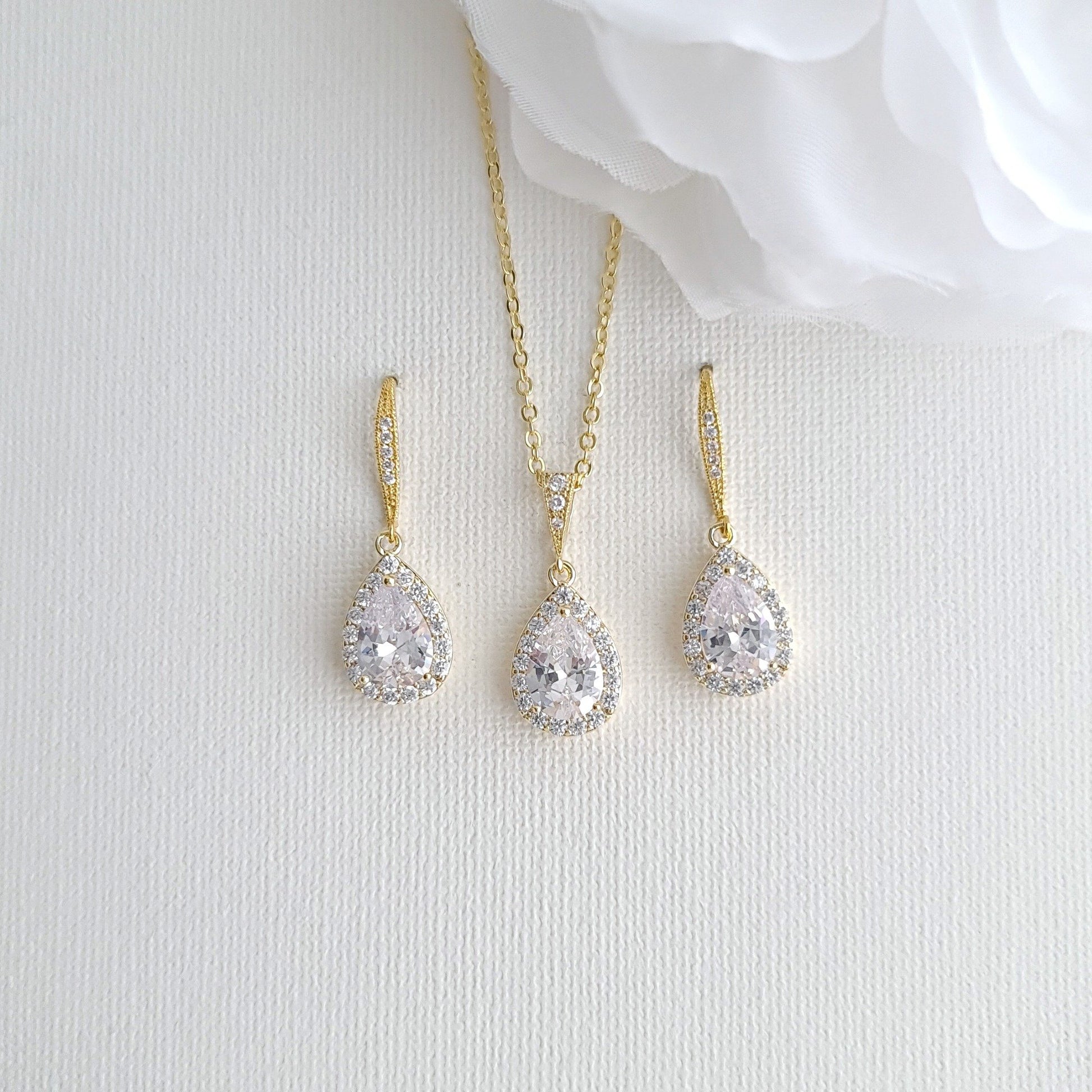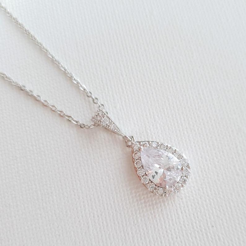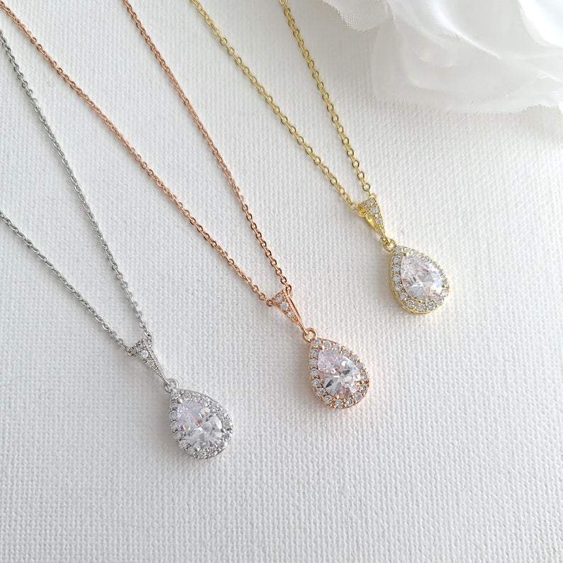 Necklace: The necklace is made with matching teardrop cubic zirconia. The matching silver, gold, and rose gold link chain are inserted through tiny bail. The necklace is available in 16" inch and 18" necklace chain. Both the necklace chain lengths come with an additional 1.5-inch extension chain incase you want to adjust the length of your necklace.