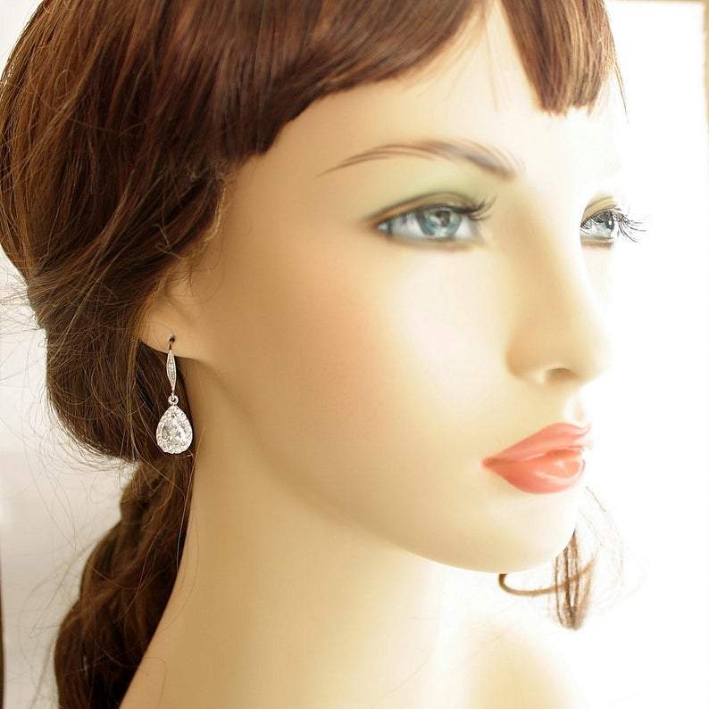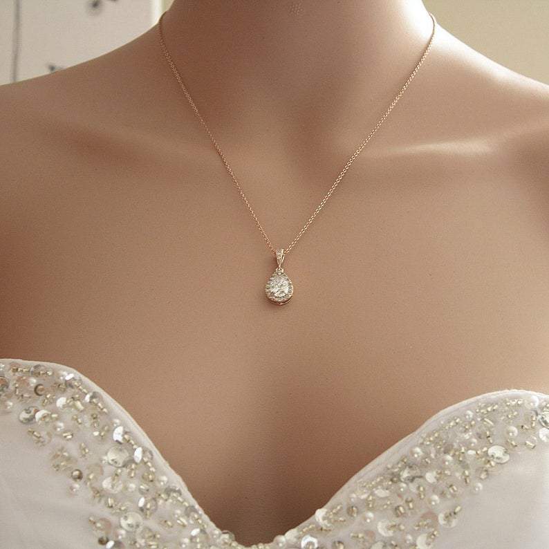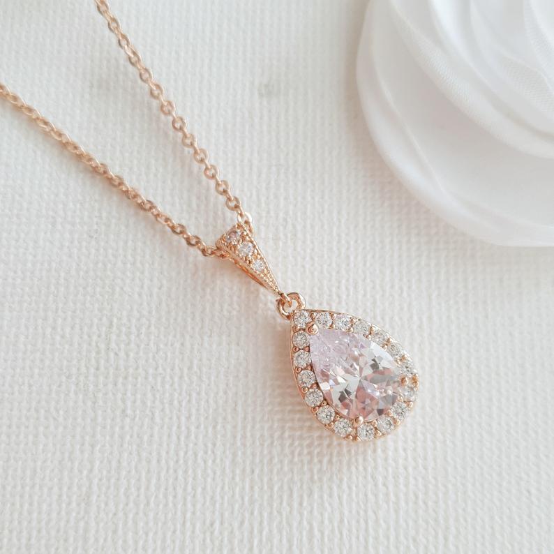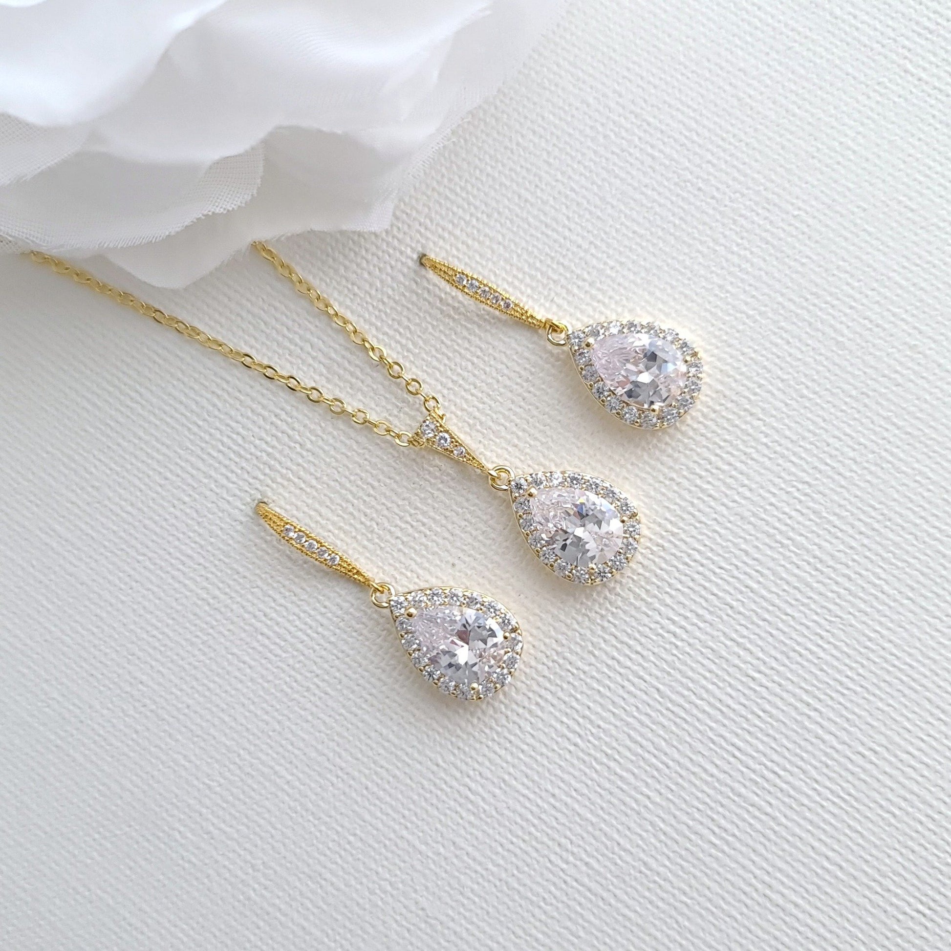 Necklace: The necklace is made with matching teardrop cubic zirconia. The matching silver, gold, and rose gold link chain are inserted through tiny bail. The necklace is available in 16" inch and 18" necklace chain. Both the necklace chain lengths come with an additional 1.5-inch extension chain incase you want to adjust the length of your necklace.